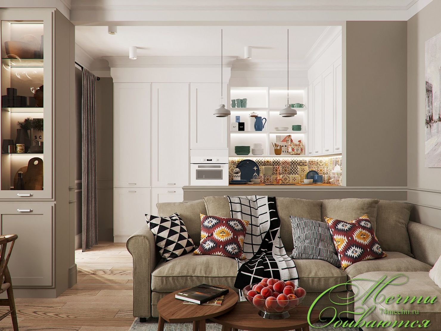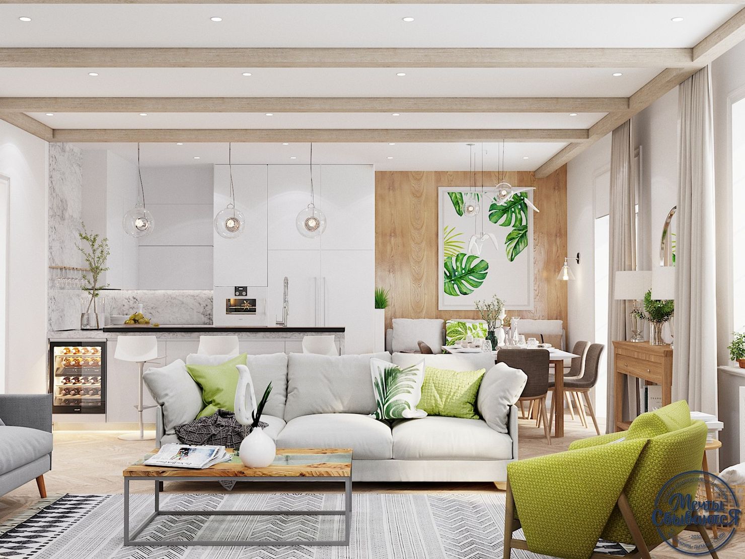 Современная гостиная-кухня с эко-элементами