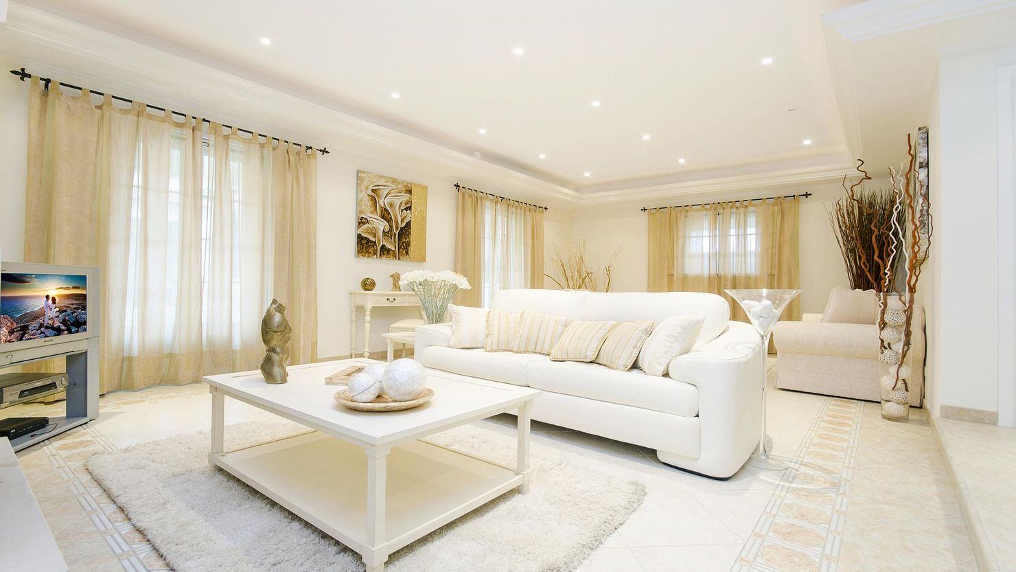 Нежная классическая гостиная в кремовых тонах