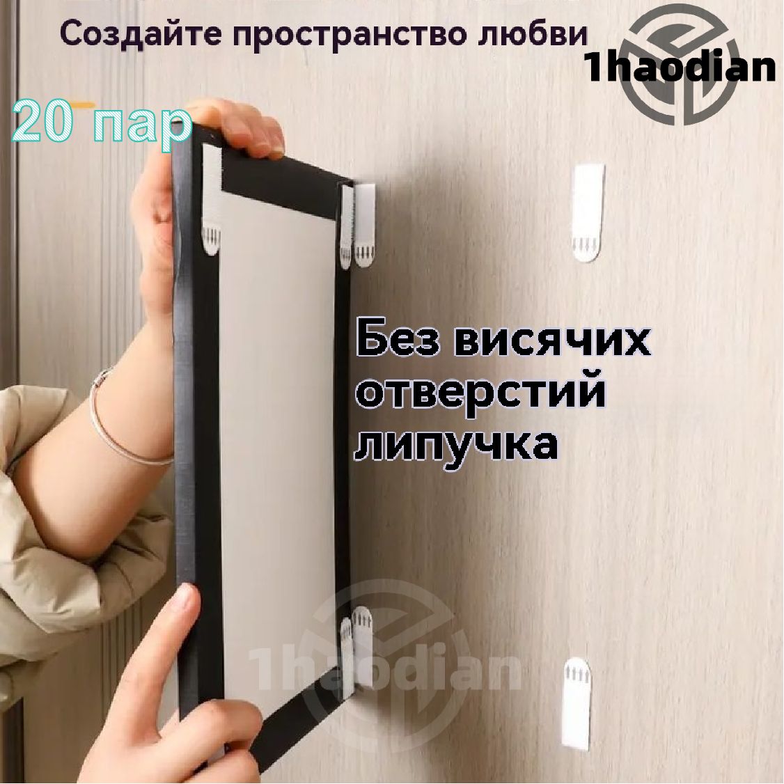 Пластиковые застежки-липучки с клейким слоем. Одна половинка клеится на стену, другая — на предмет, затем они соединяются. Главное преимущество — демонтаж без следов и возможность повторного использования (полоски просто расстегиваются). Бывают комплектации разной грузоподъемности (от 450 г до 1 кг на набор).
