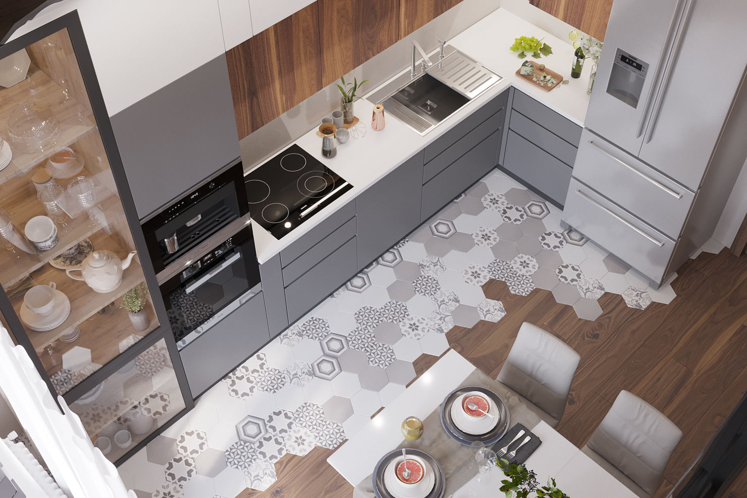 Добавление всего одного углового модуля к линейному гарнитуру делает кухню значительно удобнее, так как позволяет задействовать обычно «мёртвый» угол и увеличить полезный объём storage.