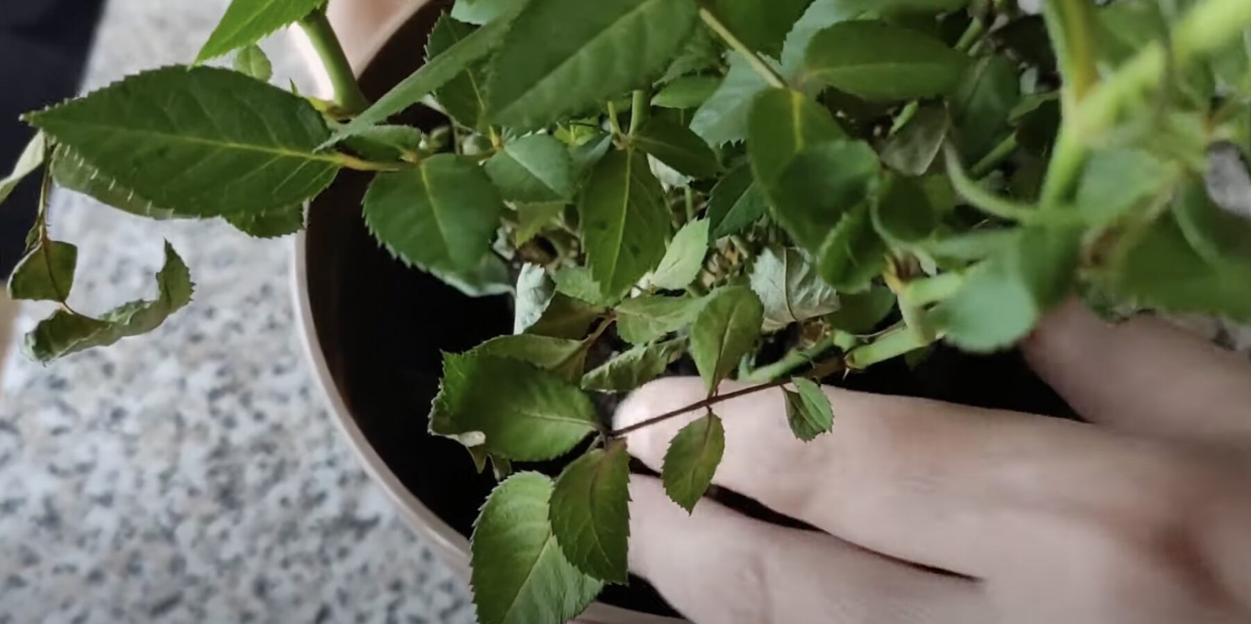 Первая пересадка требуется после покупки, но не сразу. Дайте розе 1-2 недели на акклиматизацию в новых условиях. В дальнейшем растение пересаживают по мере роста, когда корни полностью оплетут земляной ком. Лучшее время — ранняя весна. Технология пересадки после покупки часто включает «банные» процедуры: горшок погружают в воду, затем устраивают растению тёплый душ и на несколько дней помещают под прозрачный пакет для создания парникового эффекта с ежедневным проветриванием.