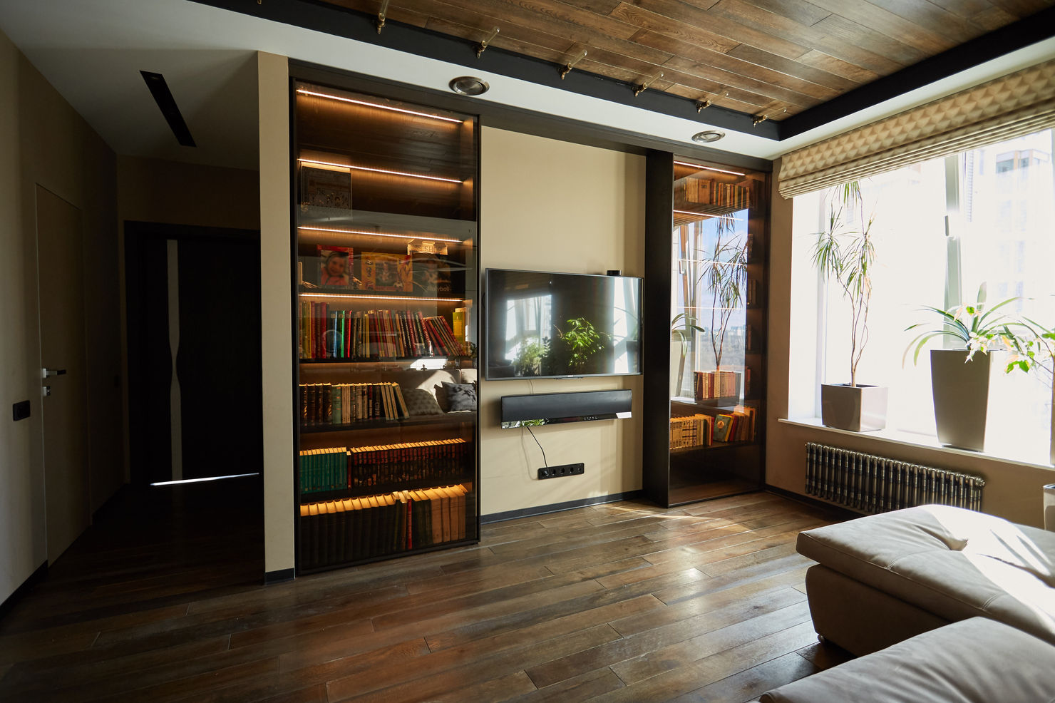 Встроенные системы хранения с подсветкой и местом для телевизора