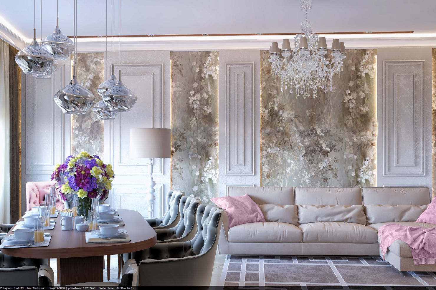 Для любителей классики в тренде остаются молдинги и шелковые обои, часто с растительными или цветочными орнаментами в стиле шинуазри. Такие обои мгновенно преображают пространство, делая его более утончённым и изысканным. Дополнить ансамбль можно подсветкой с использованием золотой или серебряной неоновой нити, которая добавляет интерьеру лёгкий блеск и теплоту.