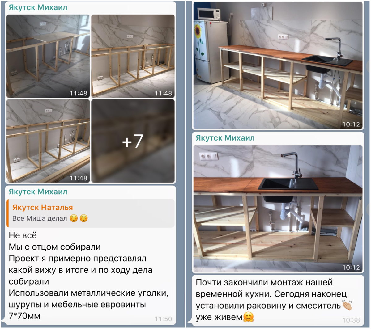 Отдельного внимания заслуживает материал о том, как участники проекта самостоятельно собрали временную кухню — отличный пример рационального подхода в ограниченных условиях.