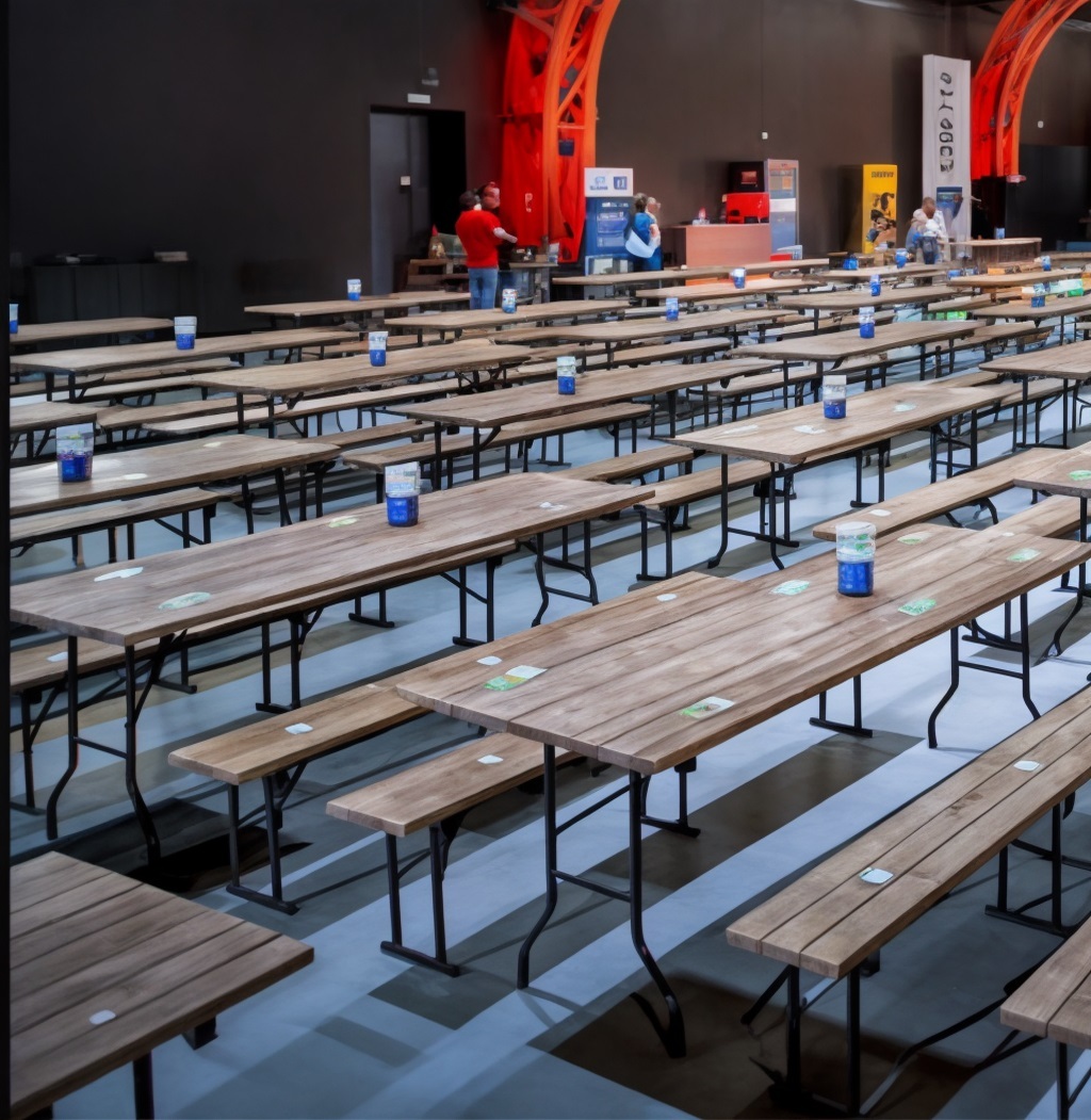 - Специализированные столы: Помимо основных, могут потребоваться дополнительные: фуршетные, сервировочные, стол для молодоженов или торта, переговорные столы для выставок.