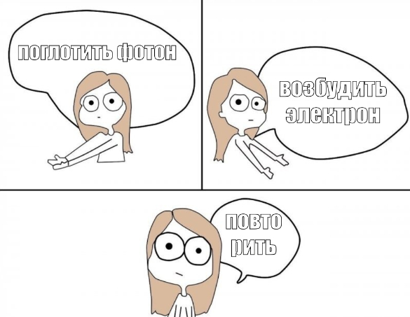 Но есть важный нюанс. Не любой фотон сможет возбудить электрон! Для этого фотон должен обладать определённой энергией (или иначе - длиной волны). Например, для отдельных атомов это очень определённая энергия. Любой другой фотон летит мимо и ничего не возбуждает.