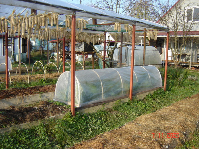 Ранняя капуста посажена 8 августа и некоторые кочаны уже можно срывать. Капуста растет под навесом и сверху чехол из полиэтилена на ночь, и в плохую погоду. Самосевные помидоры выросли по капуст...