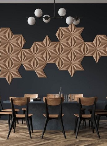 6. «Рельеф» для столовой. В какой комнате, как не в столовой, экологичность стоит на первом месте? Ведь «территория принятия пищи» обязывает быть ей самым чистым и безвредным пространством в доме! И пробковые биоразлагаемые стеновые панели идеально подойдут под эти требования.