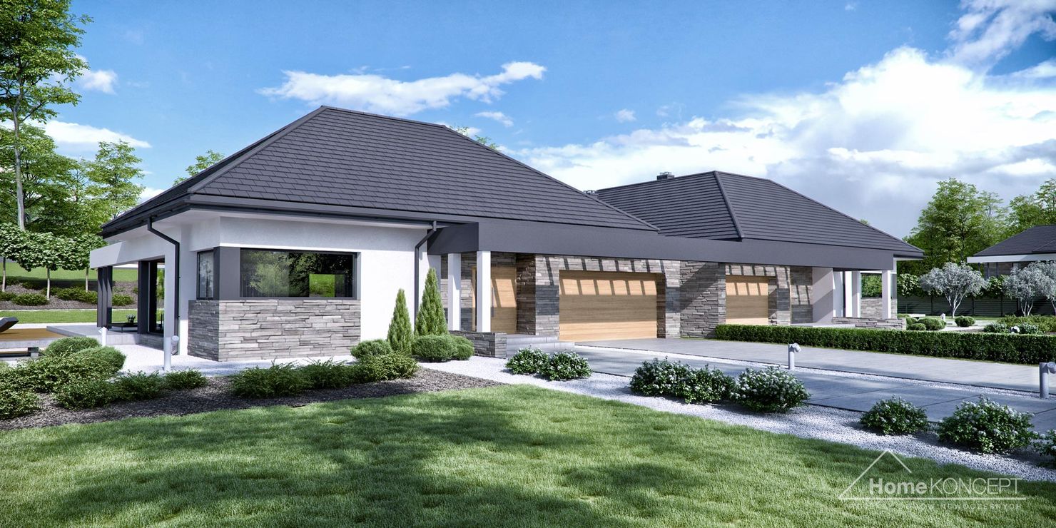 Идеальное решение для размещения двух полноценных жилых пространств на участке с ограниченной глубиной, но достаточной шириной. Дома имеют общую стену и современный лаконичный дизайн, что делает проект экономичным и стильным.