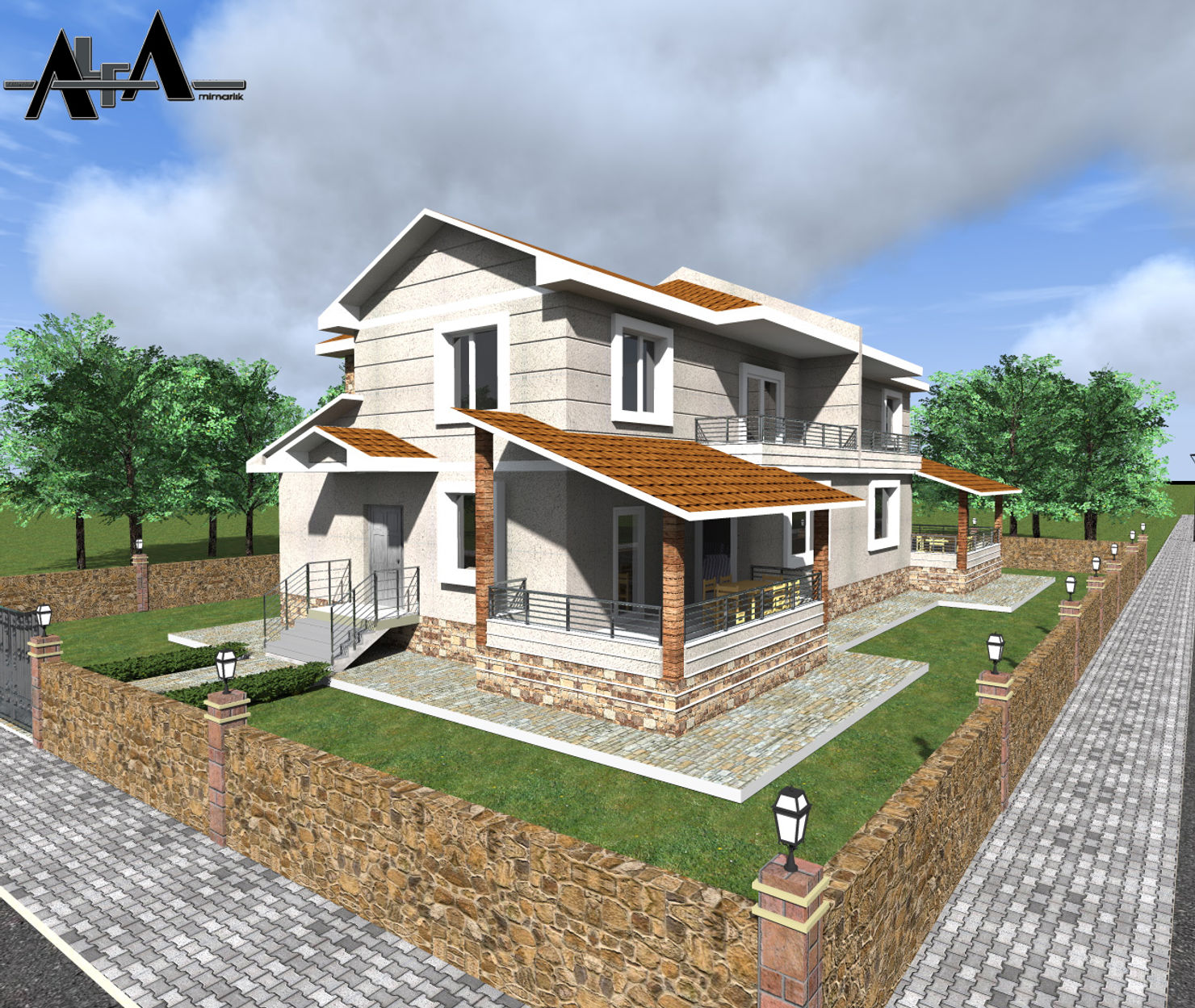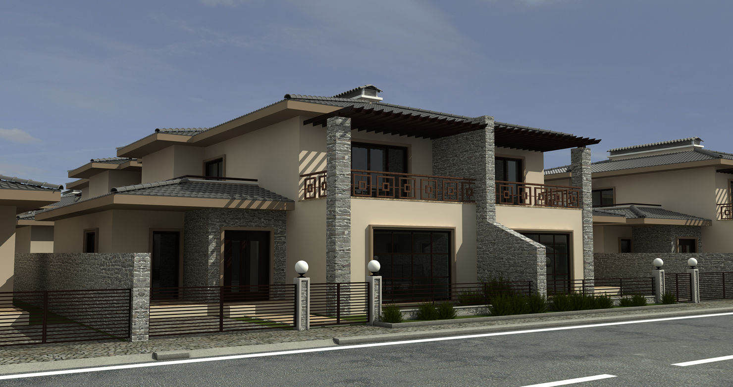 Дубль-дом, пронизанный духом Италии. Деревянные окна и двери, изящные кованые балконы, каменные колонны и традиционная черепичная кровля создают неповторимый уютный образ, напоминающий о средиземноморских виллах.