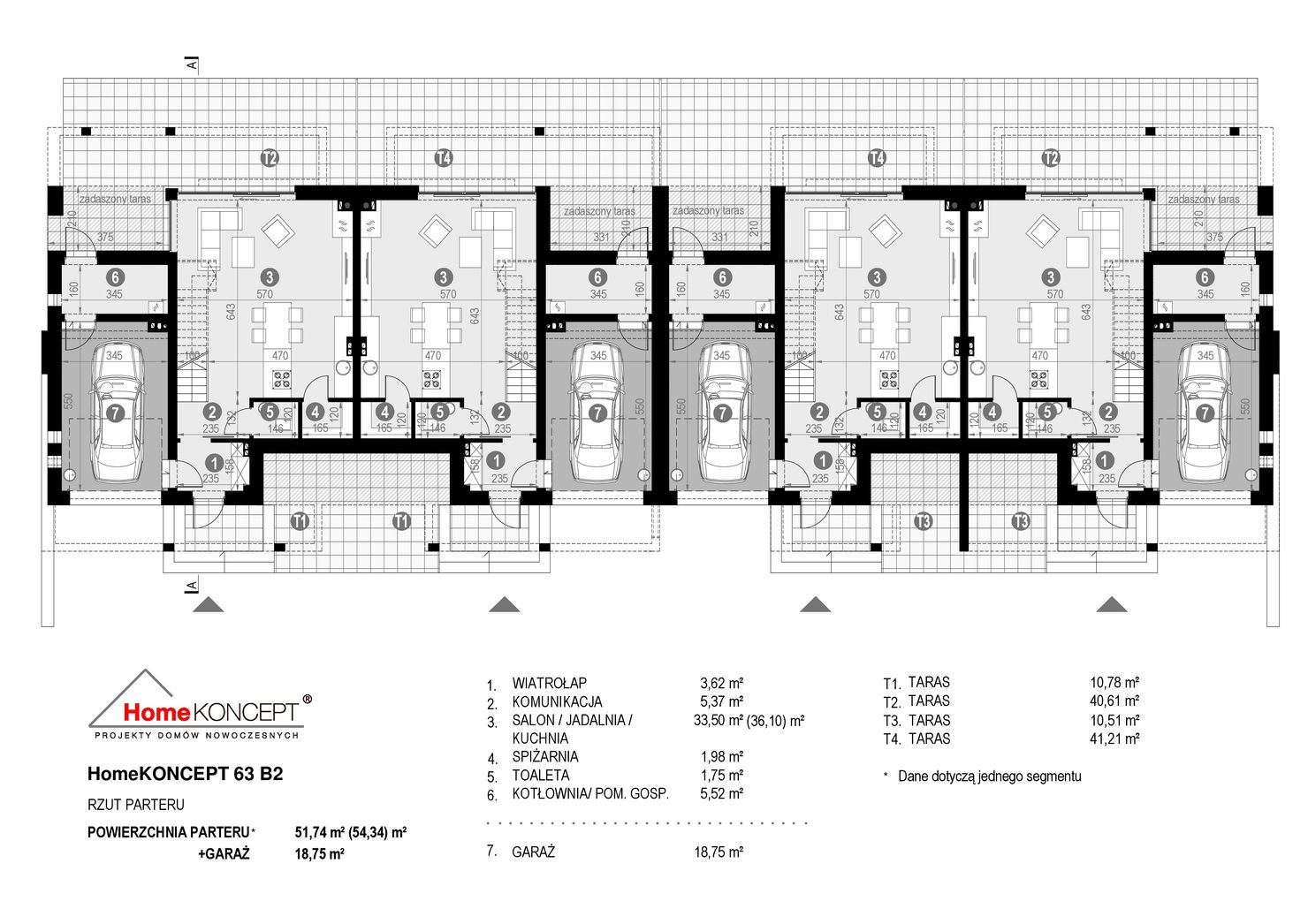 Планировка этого дома отличается грамотным зонированием: приватная зона с тремя спальнями и двумя ванными отделена от общественной, где расположена кухня-гостиная с выходом на террасу. Кухня оборудована функциональным полуостровом с барной стойкой. Соседние блоки соединены через технические помещения — гараж, кладовую и бойлерную.
