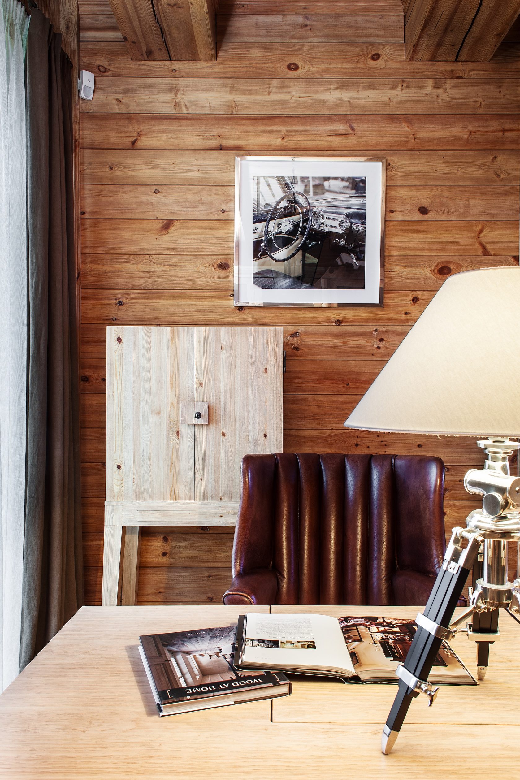 Основой проекта стало контрастное сочетание материалов и фактур, создающее глубокий, насыщенный и теплый образ. Постоянное сопоставление камня и древесины в различных вариантах обработки вызывает устойчивые ассоциации с альпийскими шале. Камень символизирует неживую материю, а дерево — органическое природное начало, что позволяет интерьеру быть одновременно современным и традиционным.