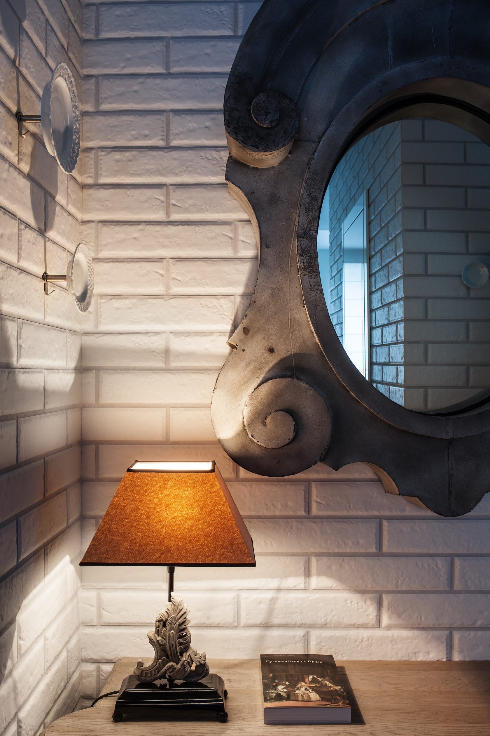 Особую роль в оформлении квартиры играют светильники и аксессуары из стекла. Например, светильник, имитирующий мыльные пузыри, добавляет легкости кухонному пространству, а потолочная конструкция в ванной комнате напоминает то ли ветви деревьев, то ли морские волны.