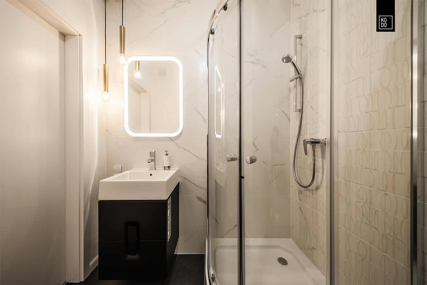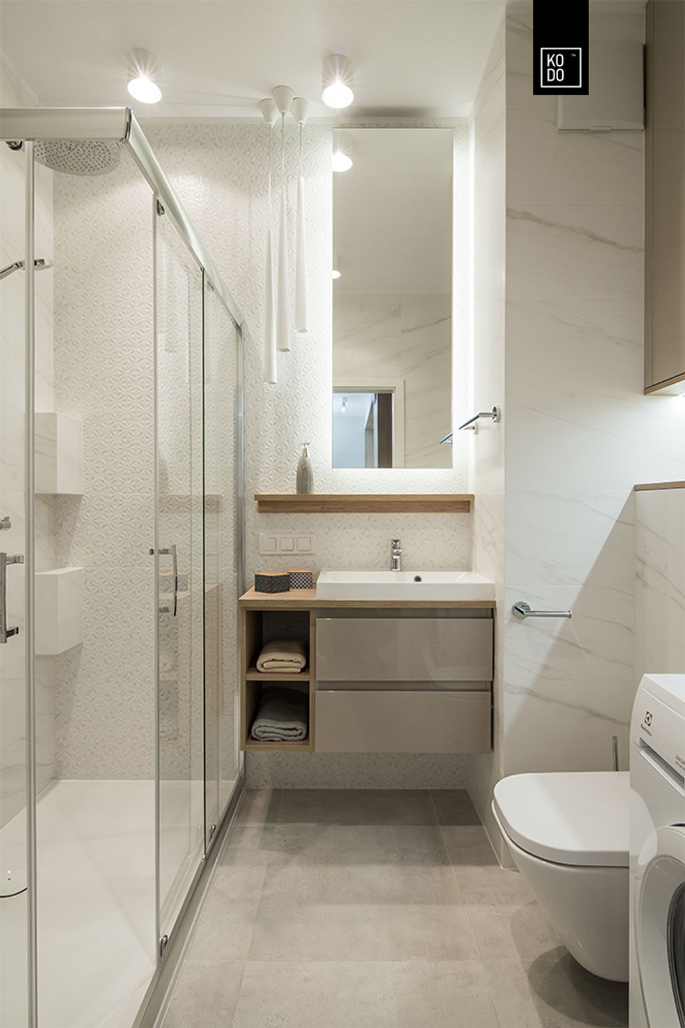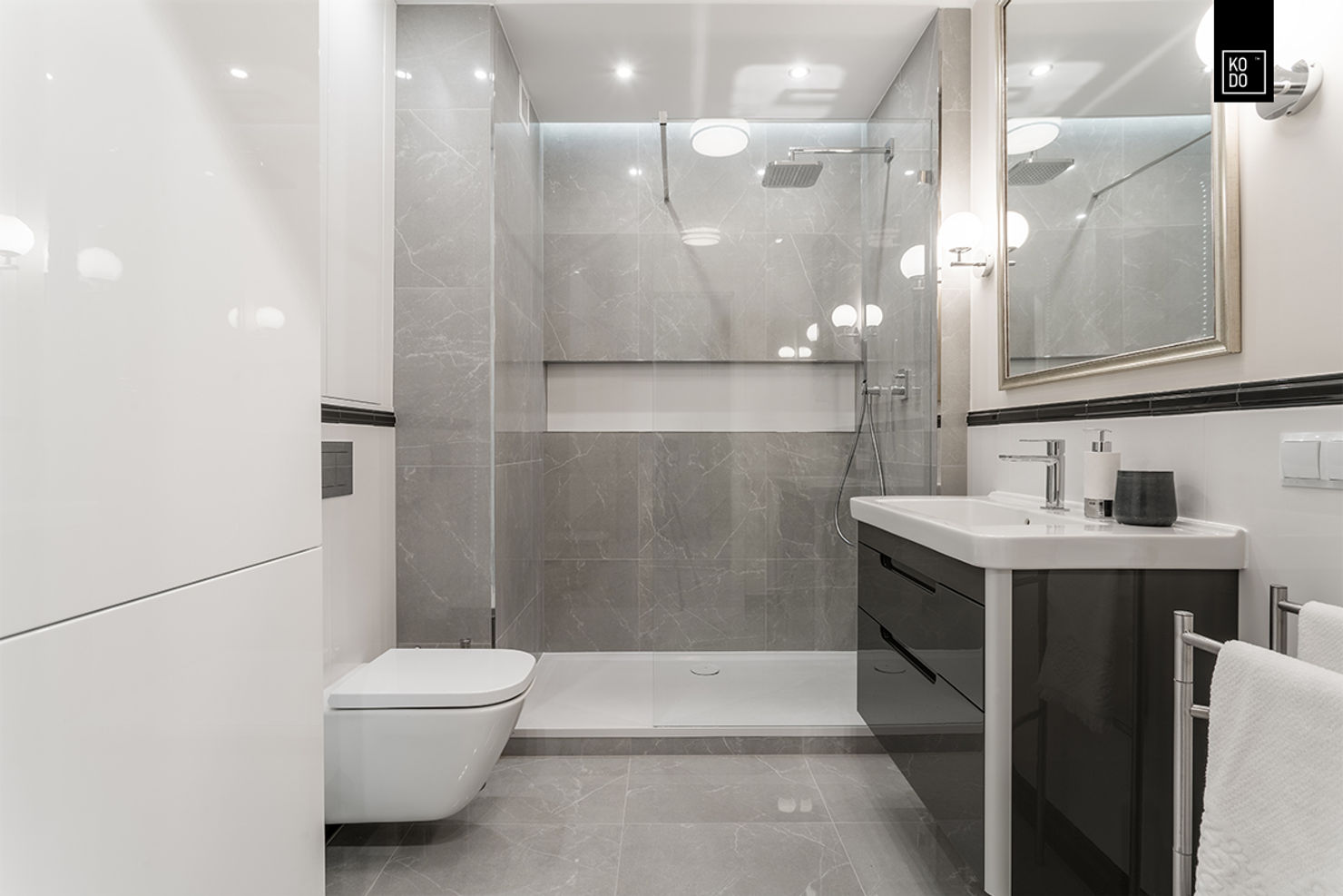 В основе этого польского интерьера — имитация турецкого мрамора Kemal Pasha, известного своей сдержанной эстетикой. Его нейтральный рисунок делает материал универсальным решением для современных проектов, где важна гармония и простота.