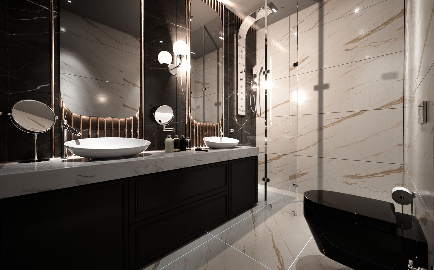 В этой статье представлена вдохновляющая подборка компактных ванных комнат, где главную роль играет отделка, имитирующая натуральный мрамор. Мы покажем, как с помощью керамогранита и плитки под мрамор (керлита) можно преобразить даже небольшое пространство, придав ему элегантность и стиль. Возможно, эти примеры подскажут вам идеи для ремонта вашей собственной ванной.
