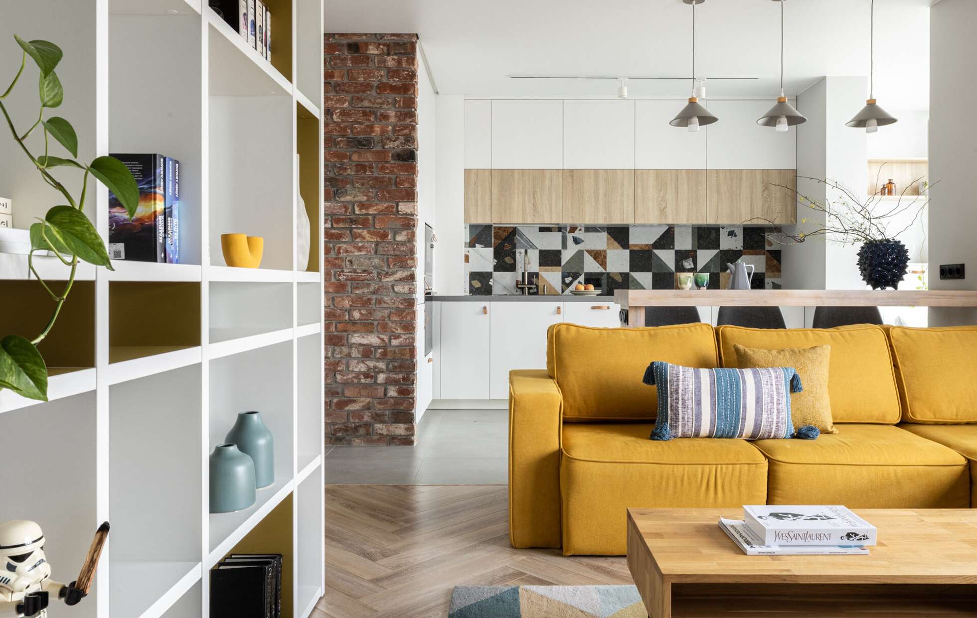 Перед нами прекрасный пример того, как даже в небольшом пространстве можно создать комфортную и стильную среду для жизни. Квартира площадью всего 48 квадратных метров, оформленная в скандинавском стиле с элементами лофта, демонстрирует блестящее решение по организации пространства. Ключ к успеху — продуманное зонирование, которое позволяет каждой функциональной области чувствовать себя самостоятельной, не нарушая целостности интерьера.
