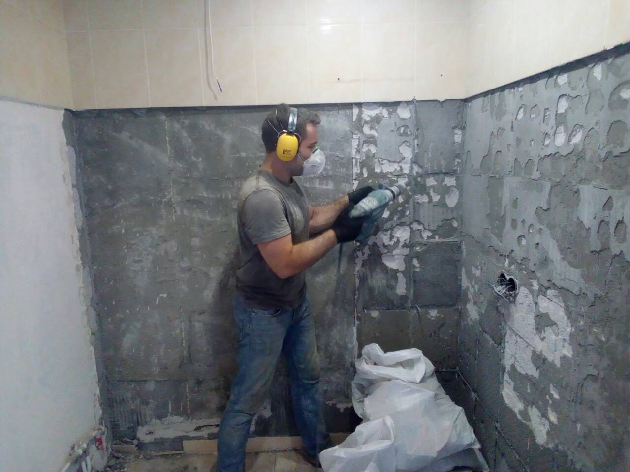 - После демонтажа очистите стену от остатков клея перфоратором или вручную.