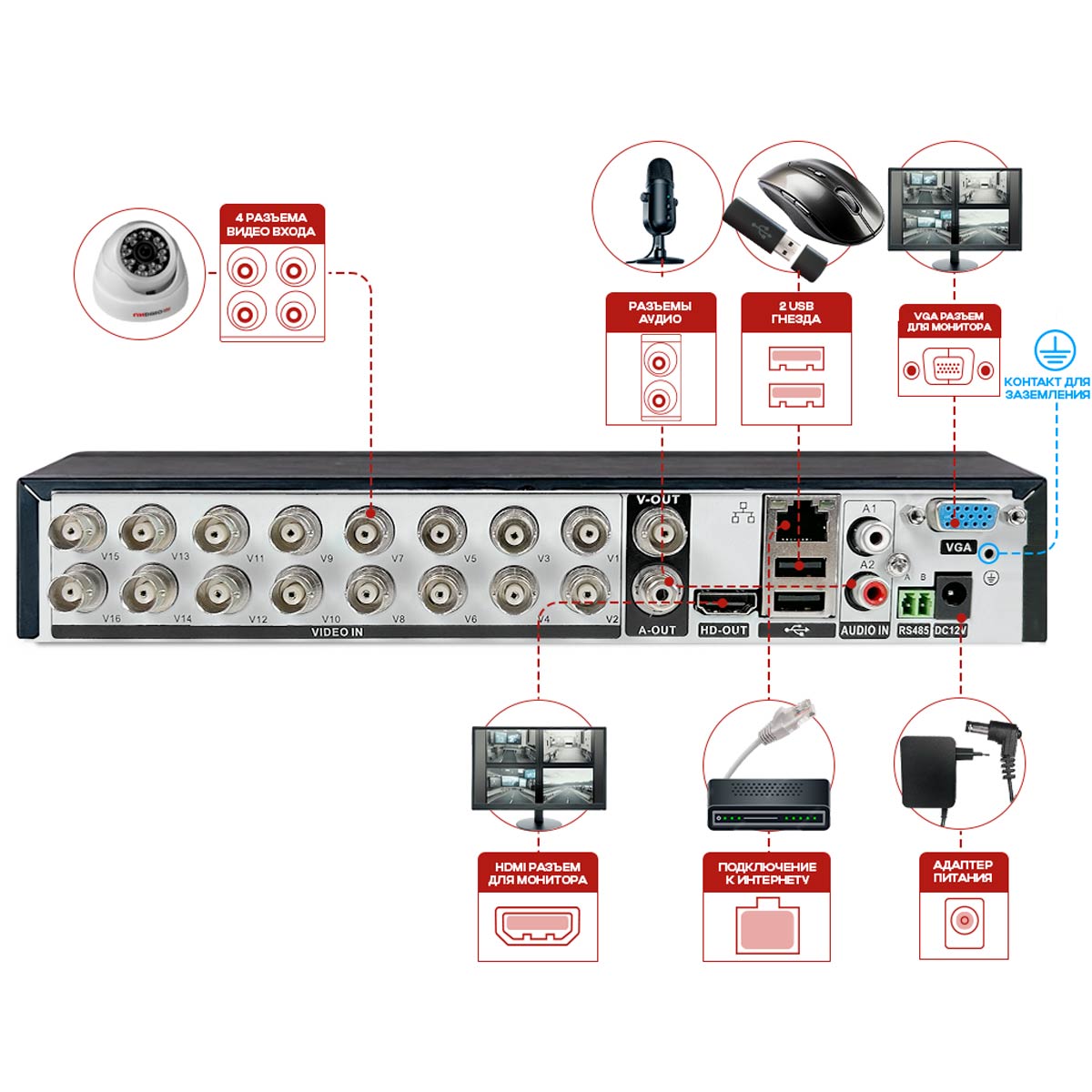 Количество каналов — это максимальное число камер, которое можно подключить к регистратору. Выбор зависит от масштаба объекта. Составьте план и определите необходимое количество точек наблюдения.