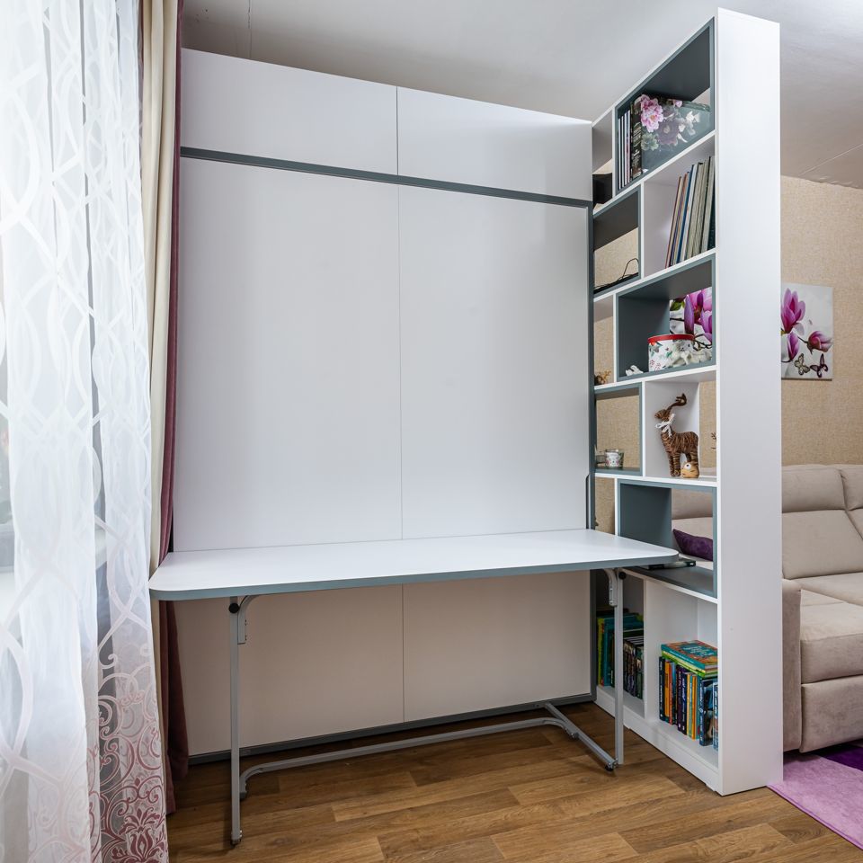 Часто в небольшой квартире кухня, гостиная и спальная зона объединены в одно многофункциональное пространство. Здесь мы готовим, отдыхаем, спим, принимаем друзей и играем с детьми. И именно здесь же нужно где-то разместить все наши вещи. Самой сложной задачей при выборе мебели часто становится поиск места для громоздких шкафов, которые «съедают» драгоценную площадь.