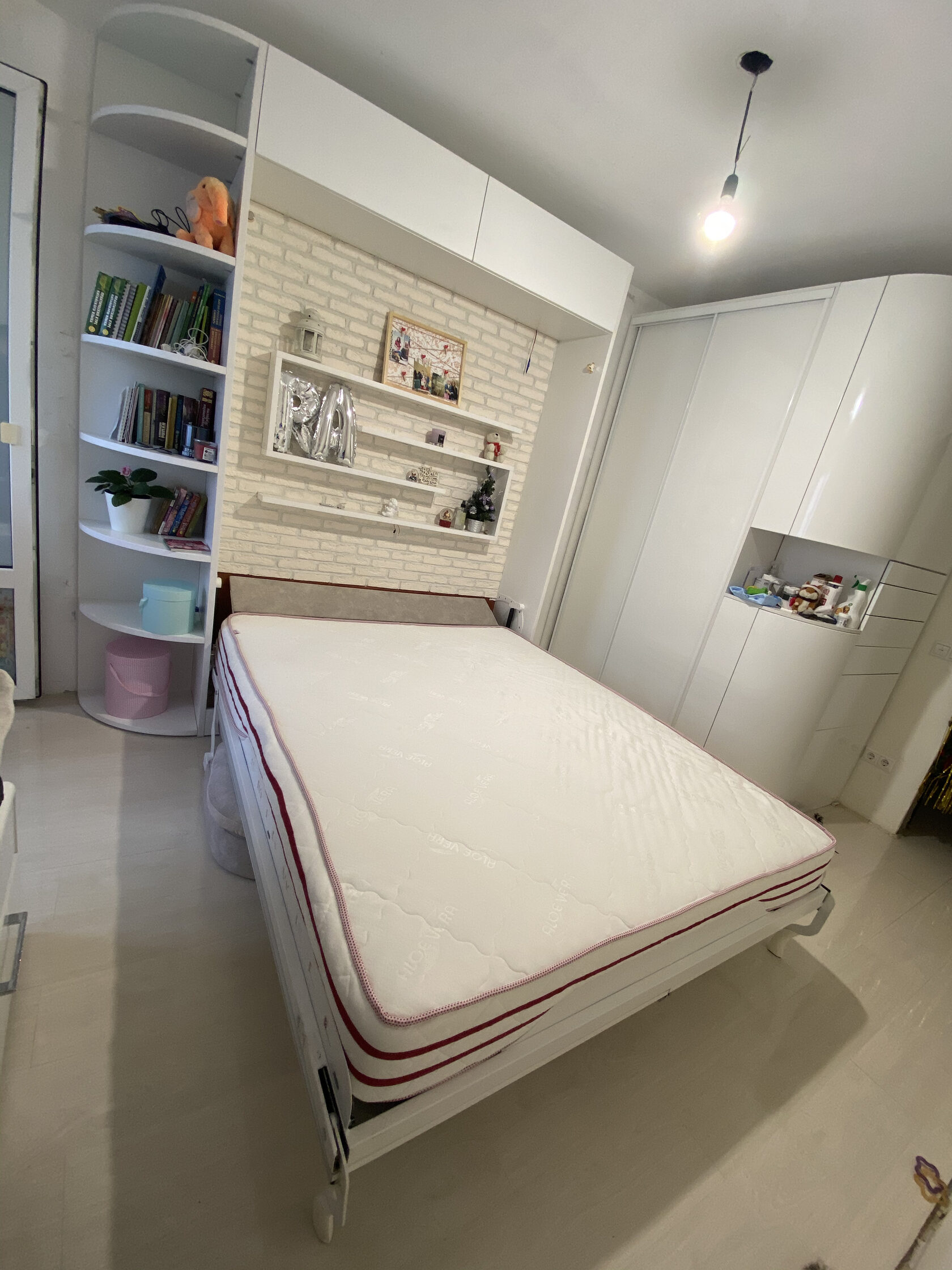 Такая конструкция может быть установлена в готовую нишу или занимать всю ширину комнаты, что позволяет не только сэкономить место, но и значительно сократить бюджет на обустройство. Вместо двух отдельных пунктов «кровать» и «шкаф» в смете остается только один, что помогает сберечь несколько тысяч рублей. Отличный бонус к функциональности!
