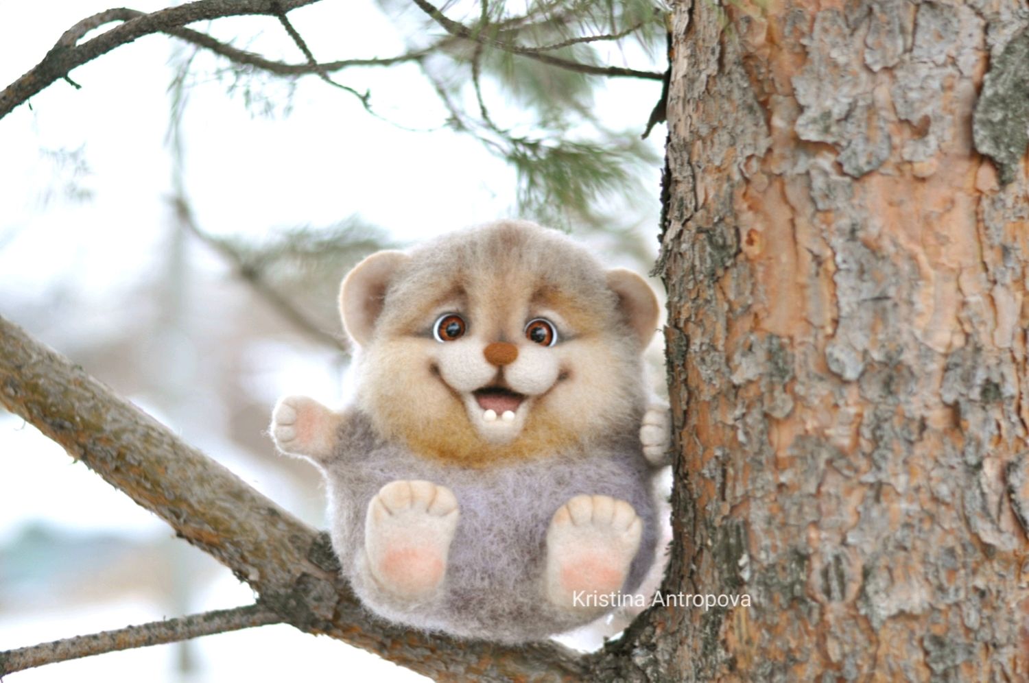 Британская художница Линдси Томас создает уникальный мир, где главными героями становятся милые и немного растерянные животные. Вдохновением для ее творчества служат забавные и трогательные выражения мордочек зверей, которые она мастерски воссоздает в технике валяния шерсти. Ее персонажи — пухлые медведи, смущенные кошки и другие зверушки — обладают яркой мультяшной харизмой и часто застаны в забавных ситуациях: медведь катается на трехколесном велосипеде с воздушными шарами, а осел готовится к заплыву, держа надувной круг в виде фламинго. Эти детали добавляют работам игривости и теплоты.