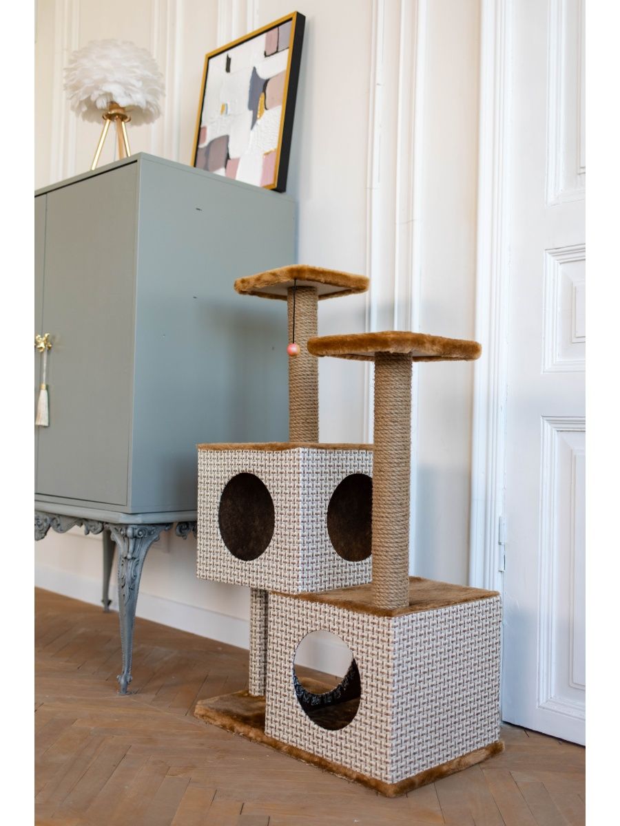 Коллекция включает в себя две основные модели: HOOP и VEGAS. HOOP — это многофункциональный комплекс, который может служить как когтеточкой, так и уютной лежанкой для вашего питомца.