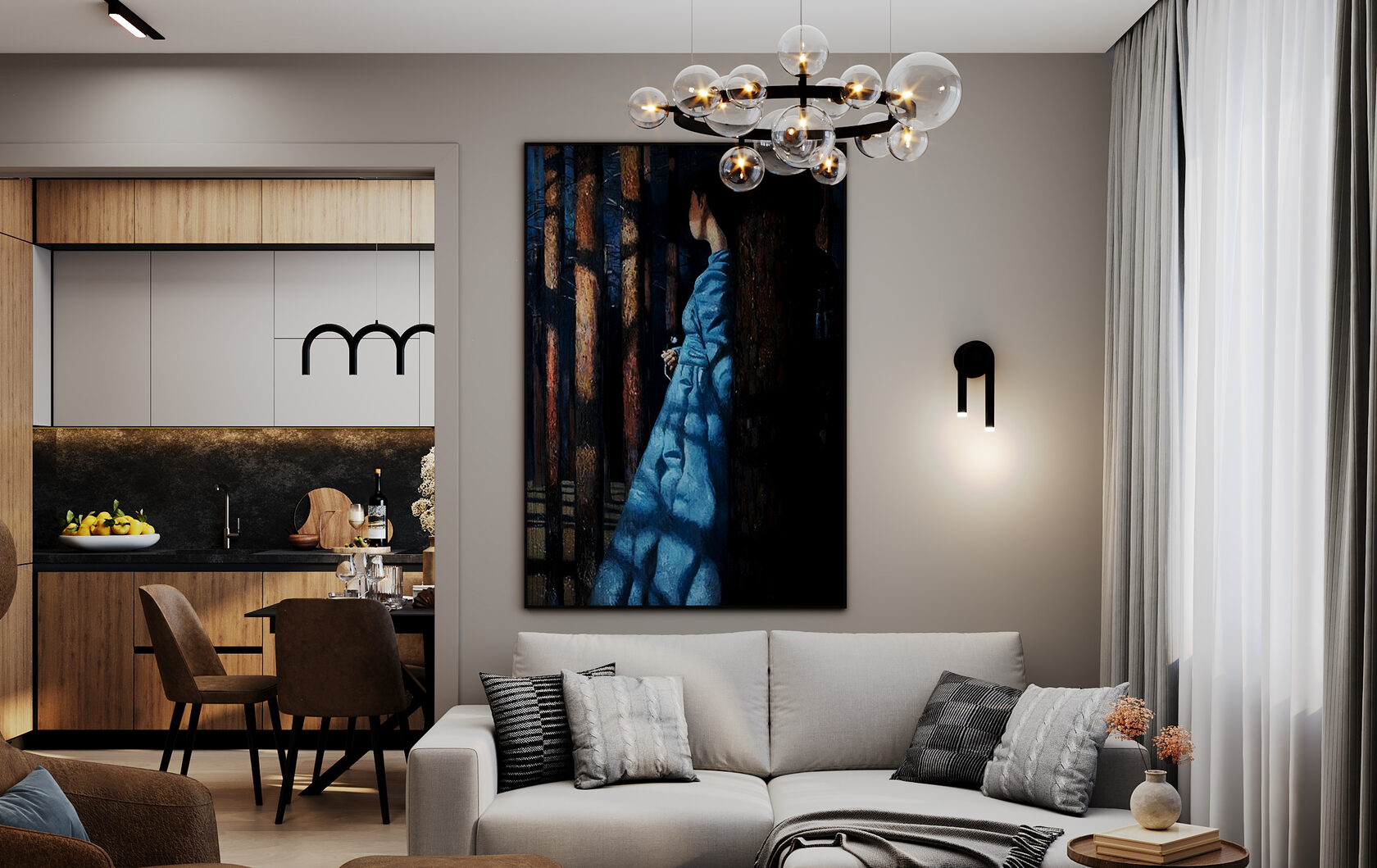 В новом интерьере всё — от общей цветовой палитры до тщательно подобранных деталей — вызывает ассоциации с эпохой 70-х. Однако пространство не стало стилизацией или музеем. Дизайнерам удалось гармонично объединить современные планировочные решения и эстетику модернизма с ретро-элементами, создав актуальное жильё с лёгкой ностальгической ноткой. Результат — светлое, функциональное и очень атмосферное пространство.