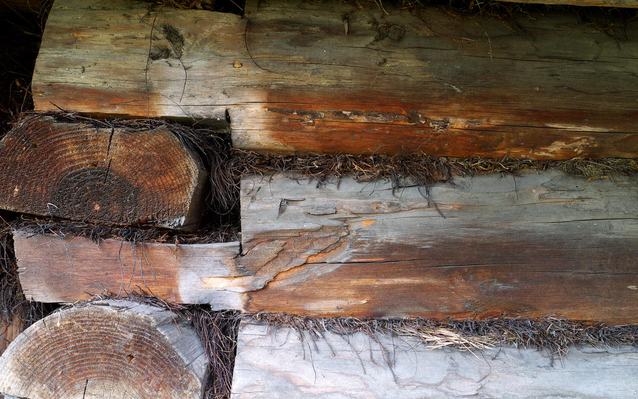 Правильно подготовленный мох становится прочным и не разлетается от ветра. После подгонки бревен его равномерно раскладывают поперек паза слоем толщиной около 5 см и шириной 25-30 см. Материал аккуратно прижимают и уплотняют ладонью. В чашу (верхний паз бревна) укладывают аналогичный слой, следя, чтобы волокна мха немного выступали за ее края. Укладку следующего бревна лучше производить вдвоем, чтобы избежать смещения уплотнительного слоя.