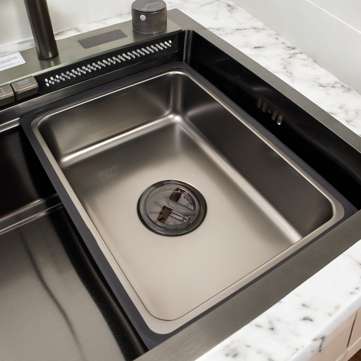 При выборе мойки важно учитывать ваши привычки и потребности. Например, модели с двумя секциями (чашами), как на фото, предлагают повышенное удобство. Вы сможете разделить процессы: в одной чаше размораживать продукты или замачивать посуду, а в другой — мыть овощи или ополаскивать стаканы. Это экономит время и повышает гигиеничность.