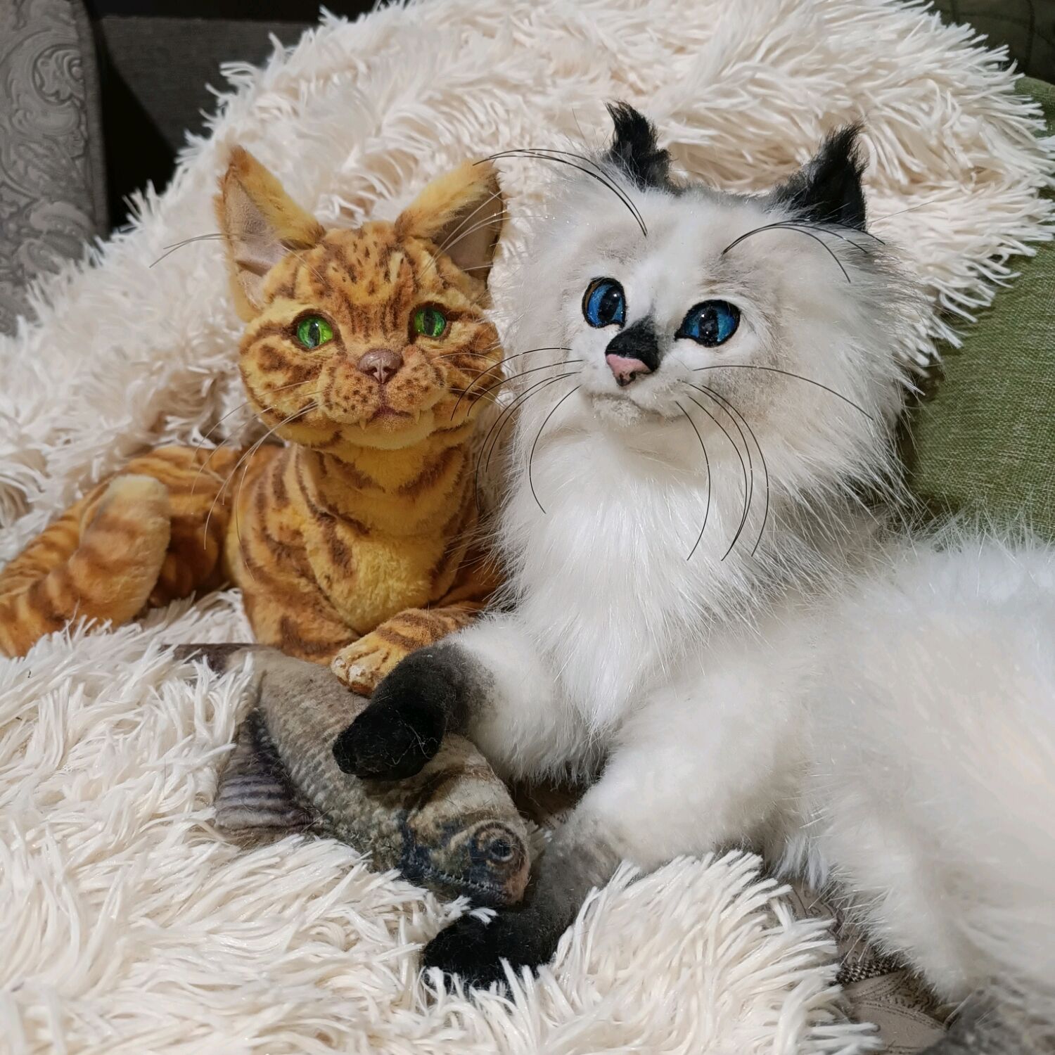 В социальной сети Instagram можно найти удивительные работы, где запечатлены невероятно реалистичные коты. На первый взгляд кажется, что это живые животные, застывшие в кадре, но на самом деле это фотографии мастерски выполненных изделий ручной работы.