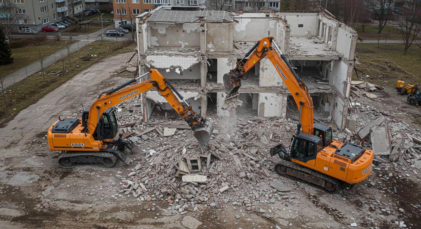 Демонтаж зданий, перекрытий и других строительных объектов — это комплексный процесс, который может потребоваться по разным причинам, от устаревания конструкций до освобождения территории под новое строительство. Существует несколько основных подходов к выполнению этих работ. Первый метод предполагает поэлементный разбор сооружения, при котором стены, перекрытия и перегородки аккуратно демонтируются по частям. Альтернативой является полный снос, ведущий к тотальному разрушению всех конструктивных элементов здания.