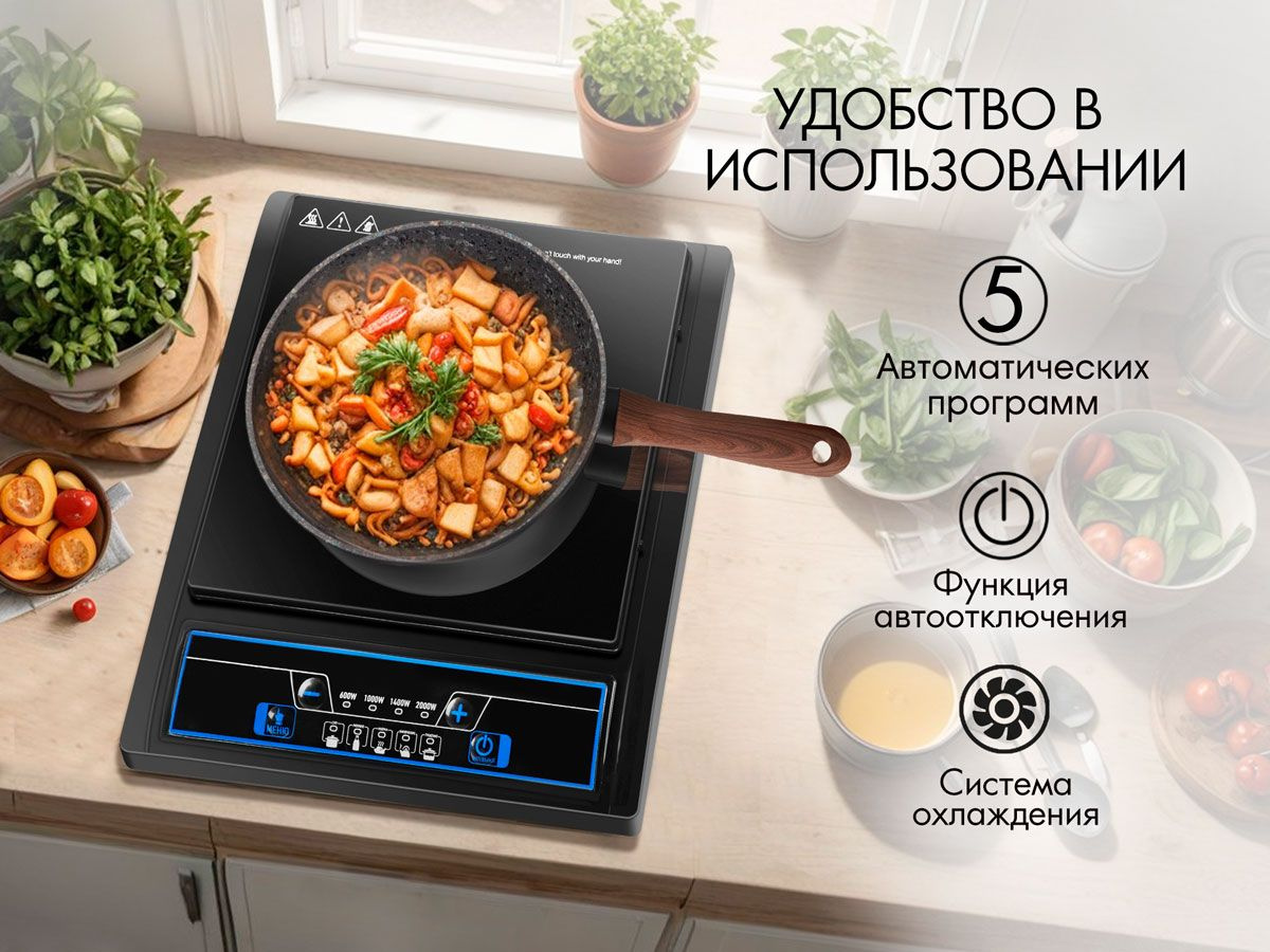 В плиту встроена защита от перегрева, что, с одной стороны, является мерой безопасности, а с другой — ограничивает возможности. Например, если нужно томить бульон несколько часов, плита автоматически отключится примерно через час.