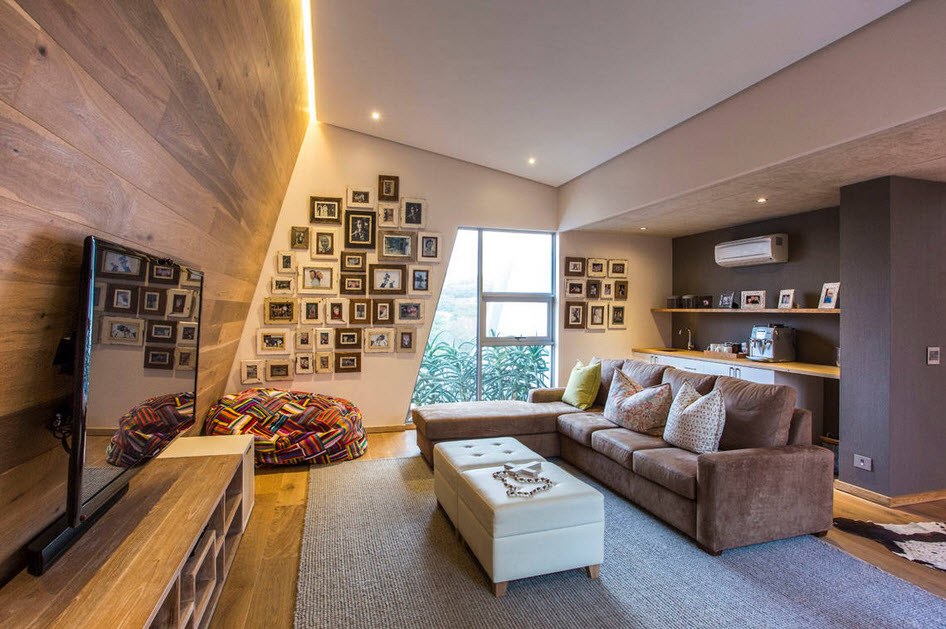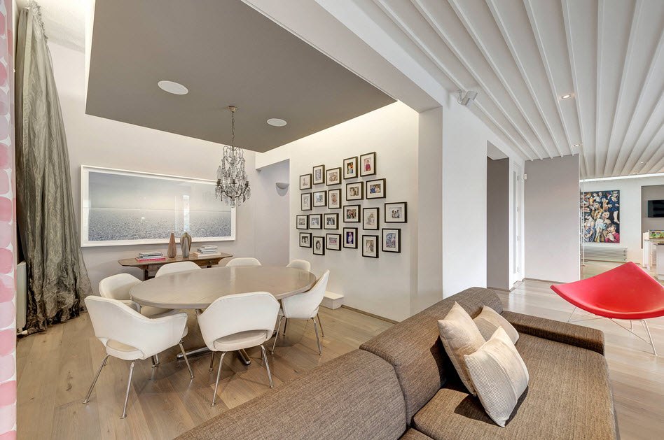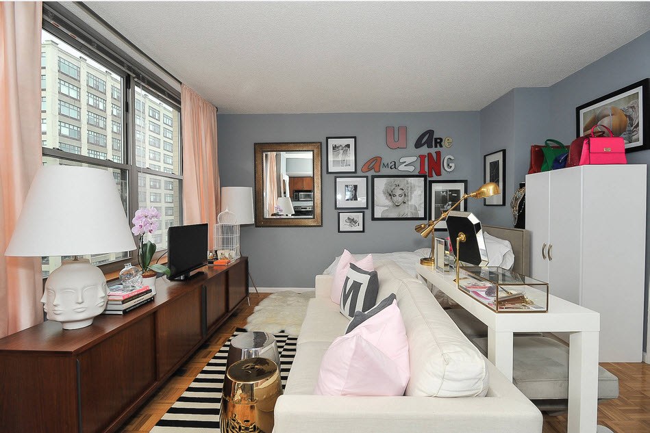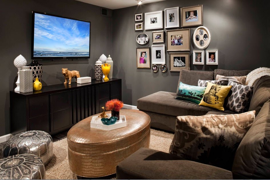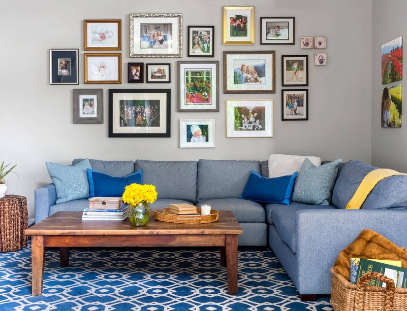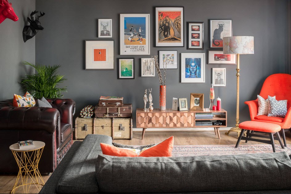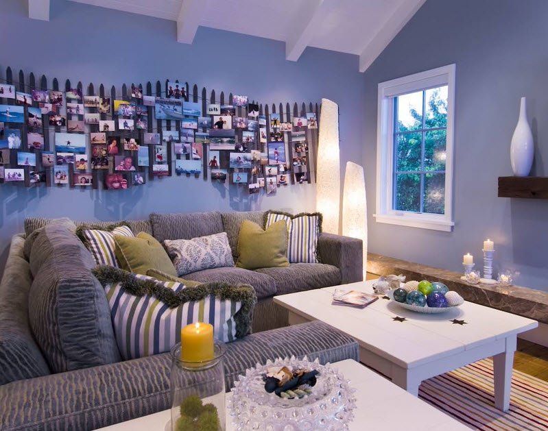 Если вы не боитесь смелых экспериментов, сделайте одну из стен своеобразным арт-объектом, заняв ее картинами и фото. Коллекцию можно будет видоизменять или дополнять, не боясь, что композиция испортится, если убрать какой-либо фрагмент.