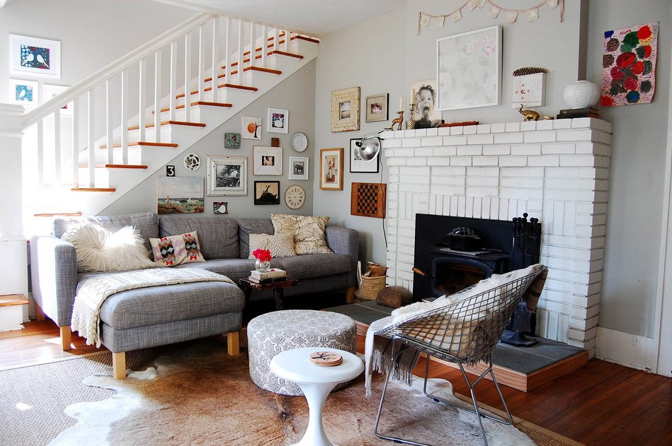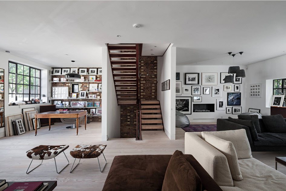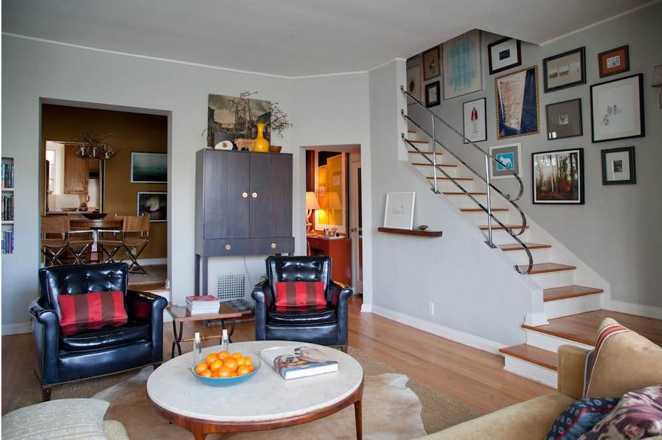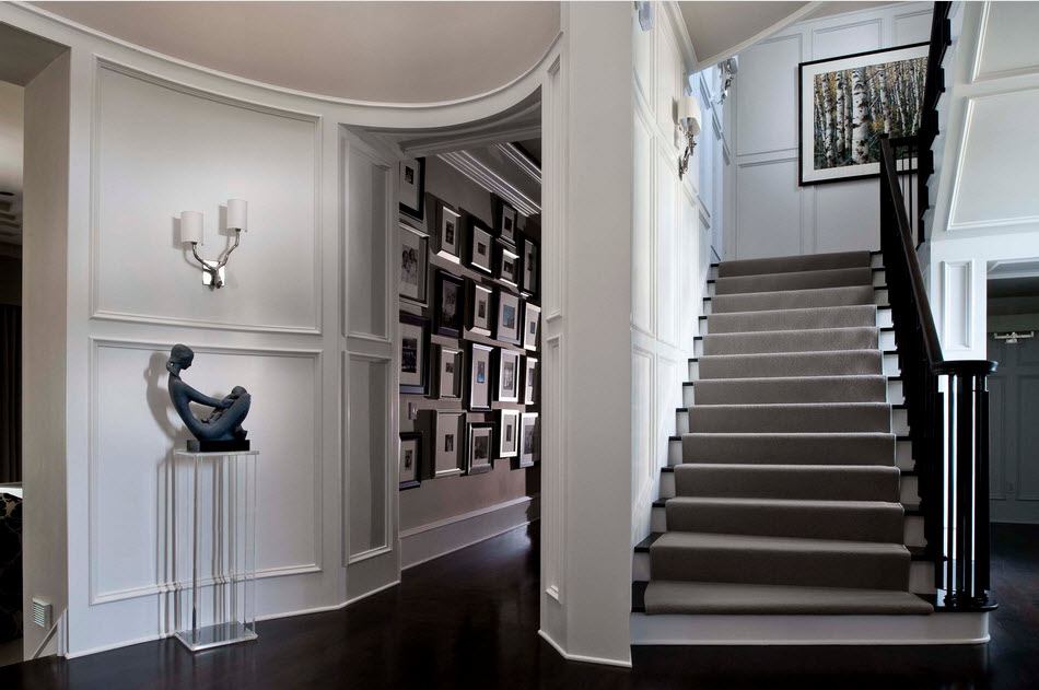 Часто стены у лестниц на второй этаж пустуют, поэтому именно они становятся роскошным полем для проявления творческой фантазии. Со вкусом развесив здесь семейные фото, вы не только создадите прекрасный уголок воспоминаний, но сделаете интерьер более уютным, домашним и наполненным.