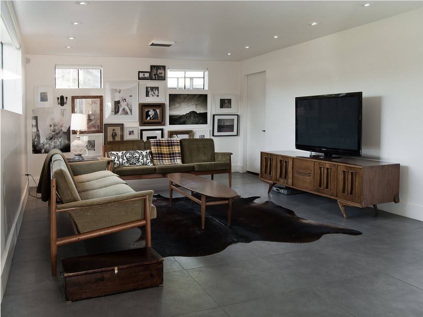 Эффектно заполнить пустое пространство, не загромождая при этом стены, можно с помощью расстановки фото и картин в рамках на полу. Чтобы не портились изображения, их важно спрятать под стекло и регулярно протирать пыль, которая время от времени оседает на рамках.