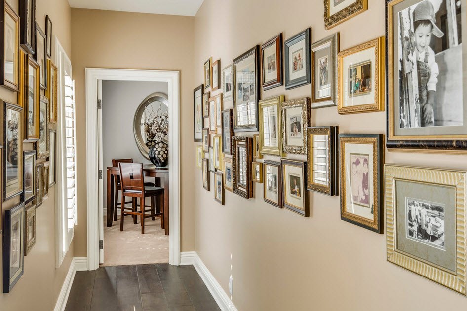 Еще один удачный прием декорирования фотографиями — украсить ими стены коридора. Это, однозначно, придаст ему большей динамики и смысла.