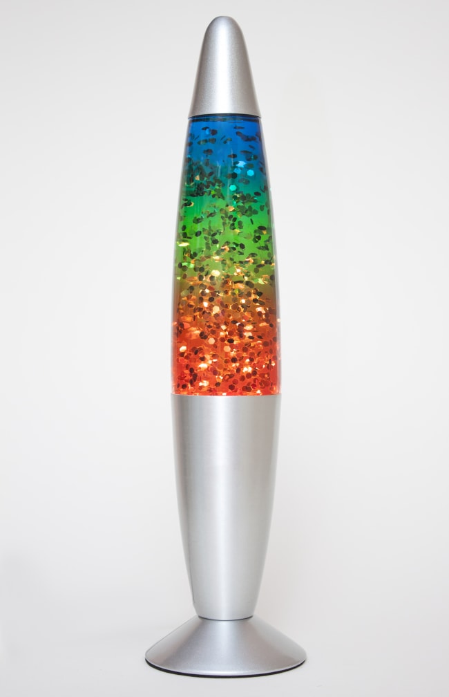 Содержимое цилиндра. Воск или парафин перемещаются плавно, размеренно, что помогает расслабиться после напряженного дня. Блестки же внутри ведут себя более энергично, заряжают позитивом и создают праздничное настроение.