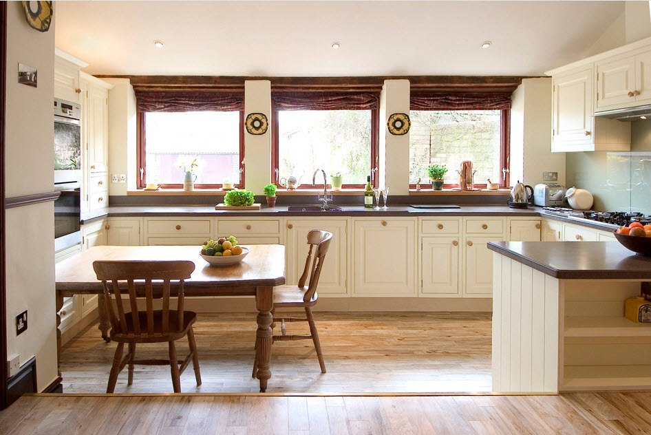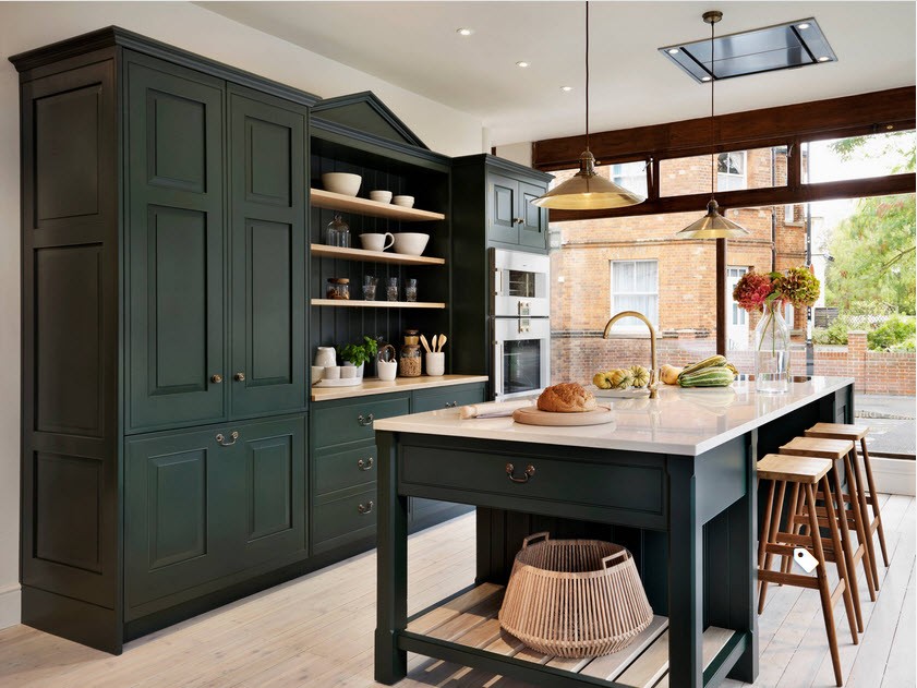 Встроенные ручки. Если ваш кухонный гарнитур украшен резьбой или прочими деталями, обычные ручки могут перегружать дизайн. В данной ситуации лучшим решением станут врезные ручки. Они абсолютно незаметны на общем фоне, ведь при изготовлении подобные ручки сливаются с плоскостью фасада.