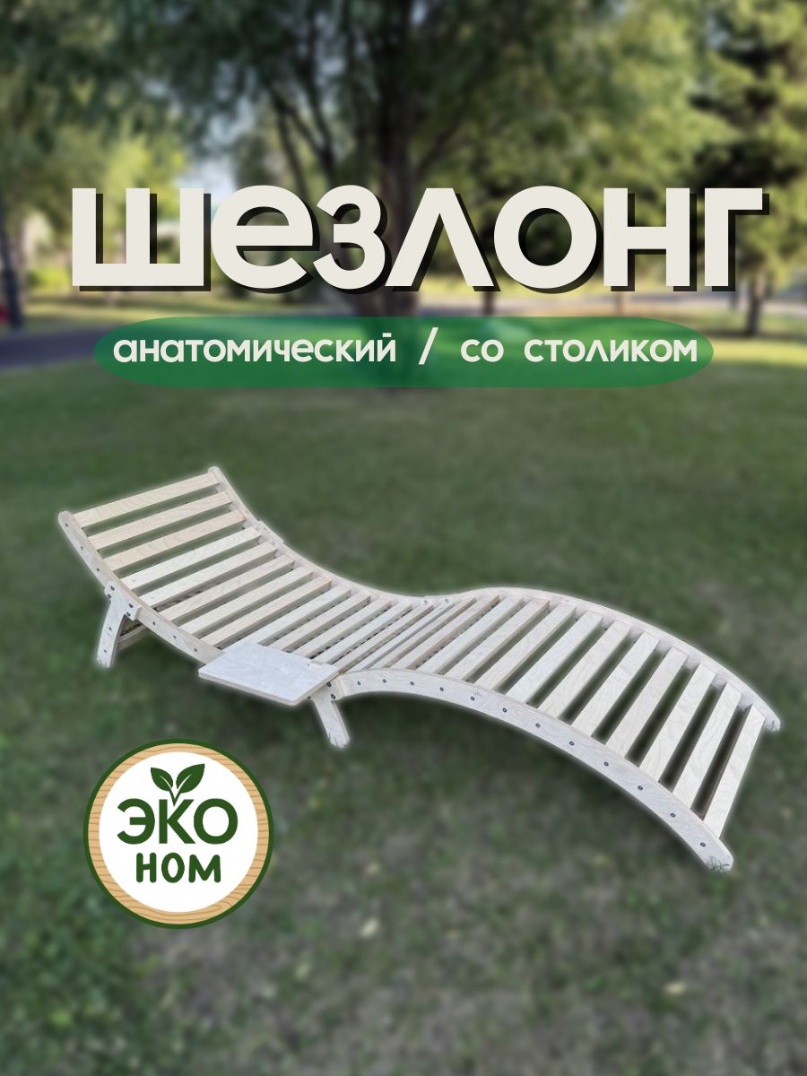 Экологичный, прочный и благородный материал. Такие шезлонги долговечны, если сделаны из качественной древесины (дуб, лиственница, тик) и регулярно обрабатываются защитными составами, лаками или антипиренами. Для комфорта к ним часто приобретают мягкие матрасы.
