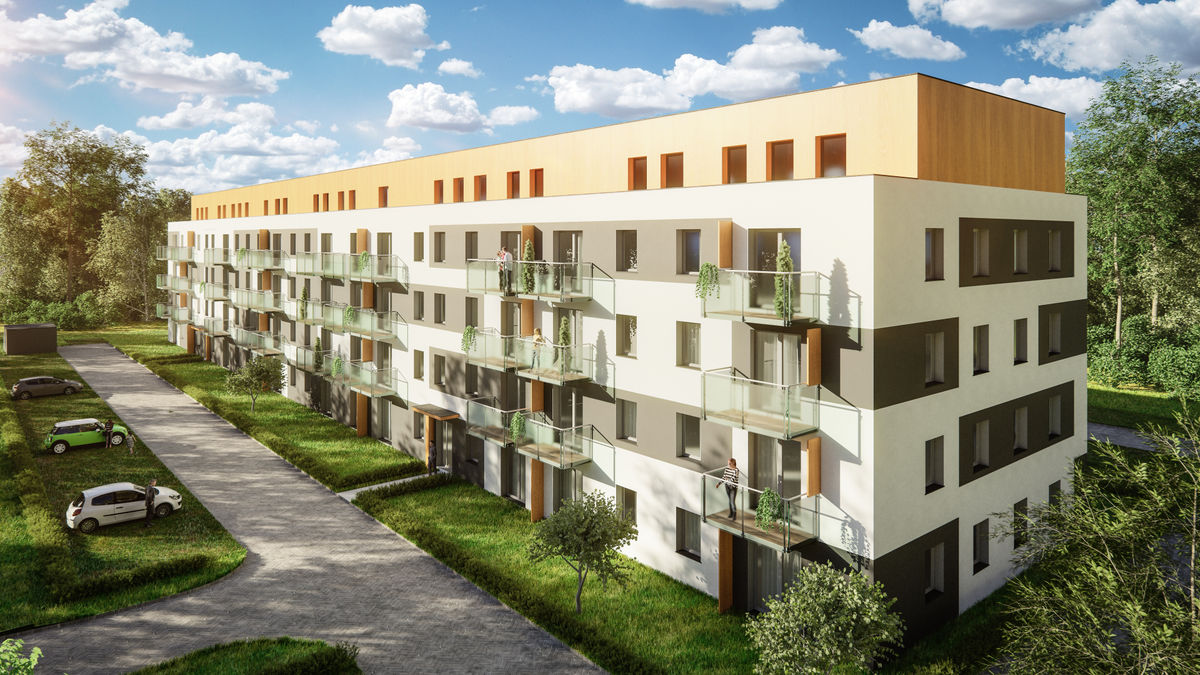 Также на территории есть многоквартирные корпуса, где вход в квартиры осуществляется через общие галереи. Я жила в 4-этажном одноподъездном доме на 14 квартир без лифта. Интересно, что по польским стандартам первый этаж считается «партером», поэтому нумерация начинается со второго. Таким образом, наш четырехэтажный дом фактически был трехэтажным.