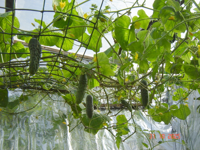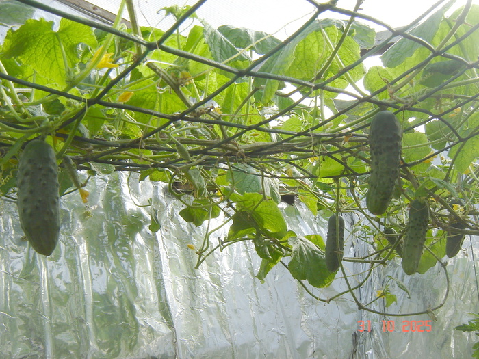 Огурцы посажены еще в мае и все лето росли без проблем, хотя теплицу я не затемнял, только снимал часть светоотражающей пленки со стен..