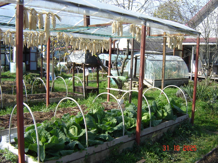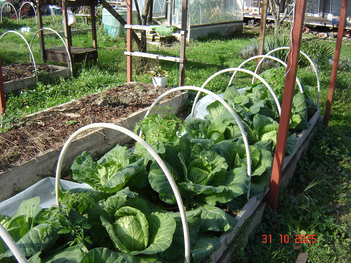 Под вторым навесом капуста и дайкон, посажены в начале сентября.