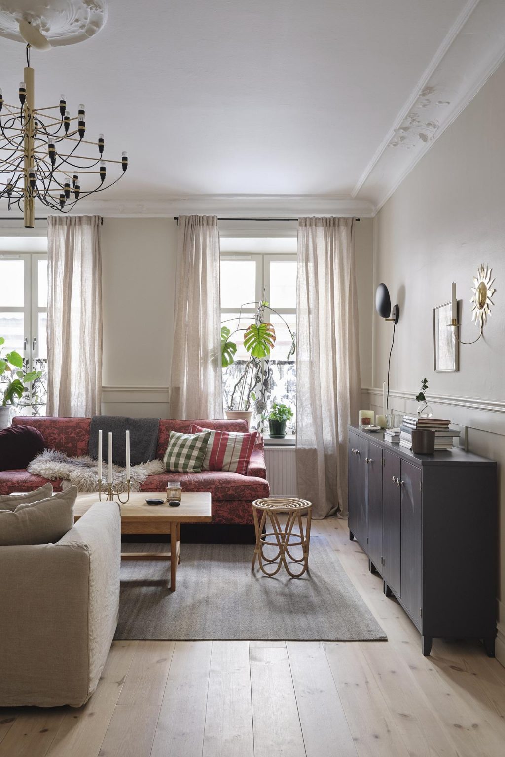 Это жилище представляет собой уникальный портрет, где каждая деталь рассказывает свою историю. Квартира площадью 117 квадратных метров расположена в культовом деревянном доме Гётеборга, в одном из его самых живописных эркеров. Её особое расположение на фронтоне здания обеспечивает невероятное преимущество: панорамный вид на зелёные просторы парка Хагапаркен и обилие естественного света, который заливает комнаты с трёх сторон благодаря высоким окнам.