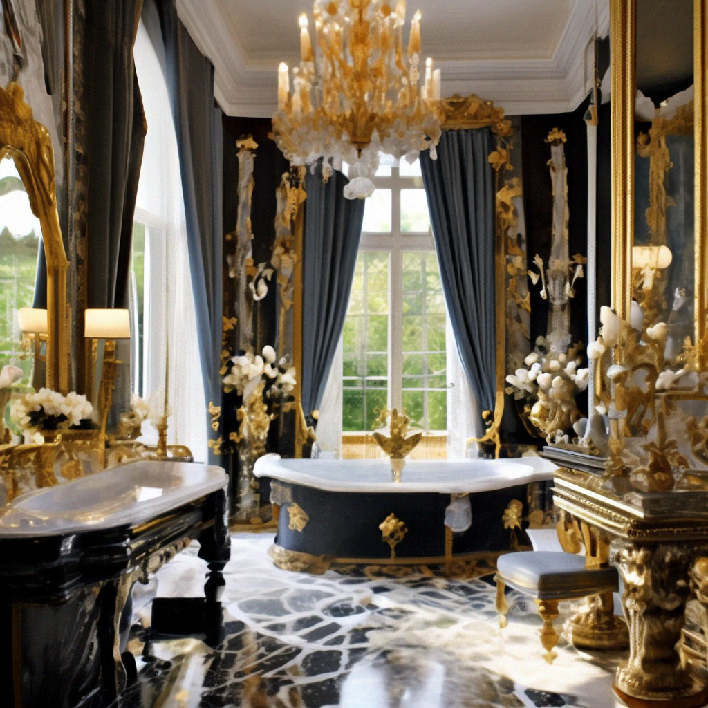Предлагаем вам совершить виртуальный тур по невероятно роскошной ванной комнате, выполненной в стиле барокко. Этот дизайн олицетворяет собой высшую степень изысканности и богатства, характерных для эпохи барокко, где каждая деталь говорит о статусе и вкусе владельца.