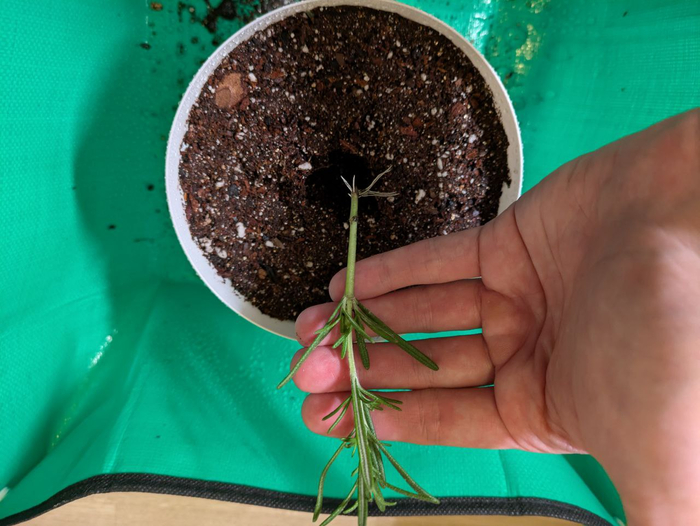Делаем в земле дырдочку на 2 сантиметра и втыкаем туда наш черенок, плотно обжимаем и проливаем отстоянной водопроводной водой комнатной температуры. Розмарин уважает слабо щелочную среду, поэтому жёсткая вода из под крана ему прям подходит, у меня это примерно 7.5 единиц по рН метру.