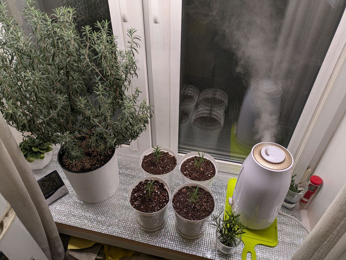 Резюмируя, скажу, что если все условия в порядке, то розмарин растёт довольно быстро. Свой куст я укоренял где-то к конце ноября 2024 года, вот фотка из поста от 6 января 2025.