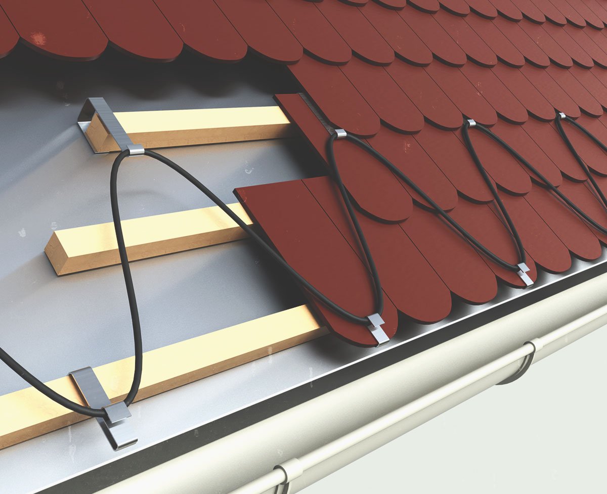 Качественный монтаж включает надёжное крепление кабеля с помощью специализированных фиксаторов, не нарушающих целостность кровельного покрытия. Например, на металлочерепицу сначала клеят прорезиненную подложку, а уже к ней крепят кабель. В водостоках кабель часто подвешивают на несущий трос, чтобы тяжёлая наледь не оборвала его.