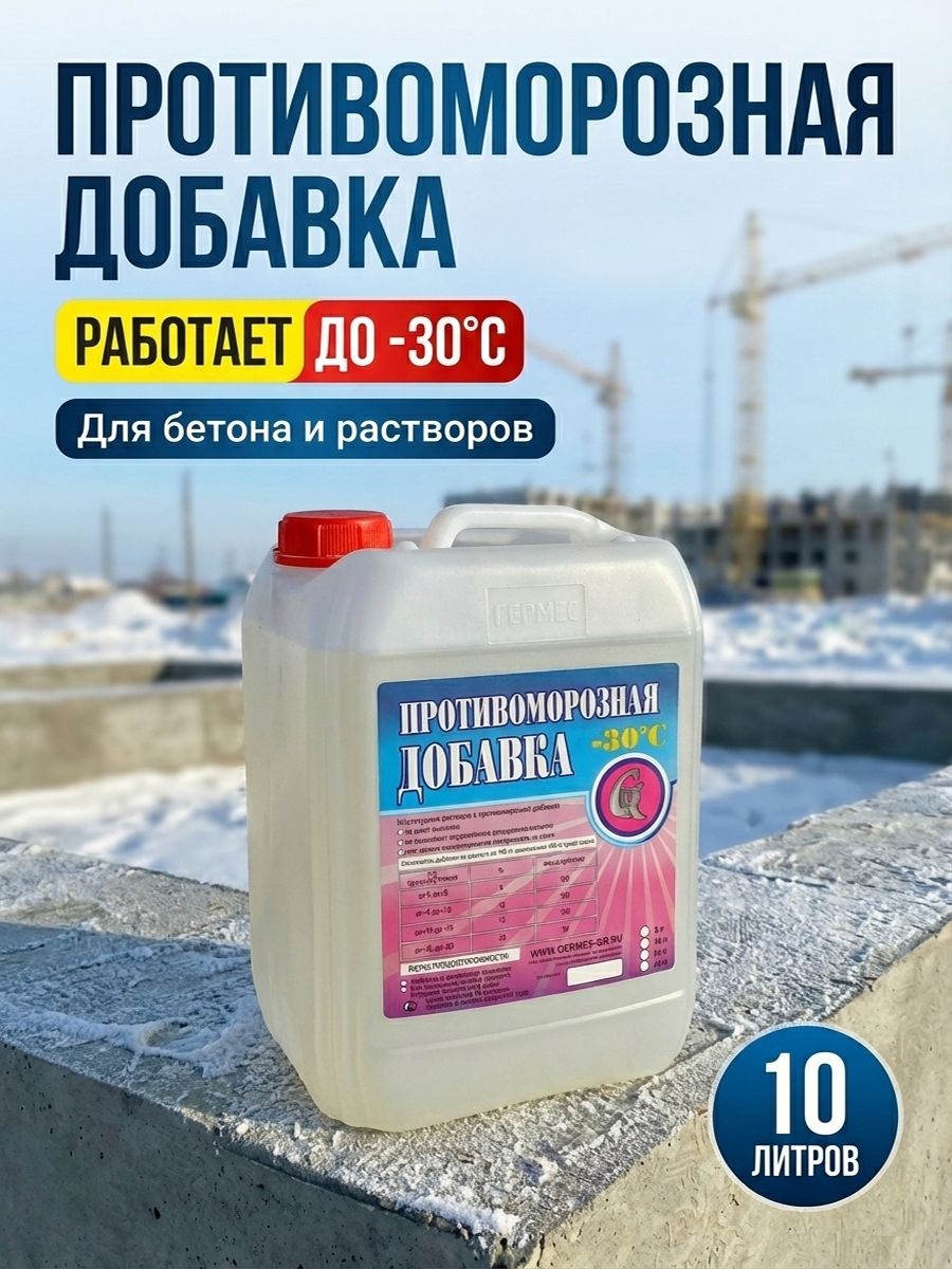 Аммиачная вода — жидкая добавка, получаемая растворением аммиака. Её плюсы: не вызывает коррозии арматуры, повышает морозостойкость бетона, но замедляет его схватывание. Концентрация варьируется от 5% при -5°C до 20% при -35°C.