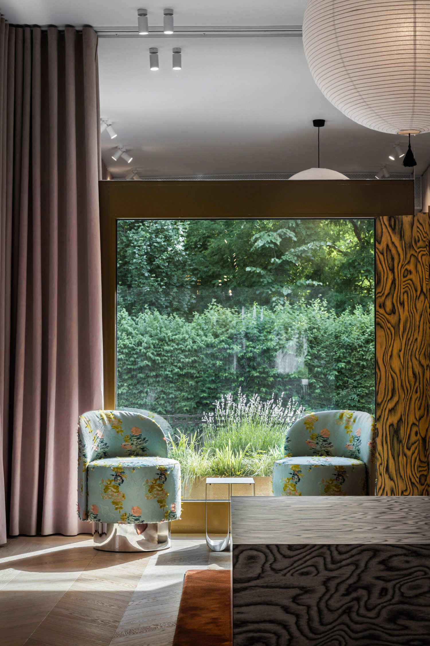 Ключевой эстетической идеей проекта стало гармоничное сочетание старого и нового. Архитекторы не стали скрывать исторические элементы, а, наоборот, сделали их частью современного дизайна. Отреставрированные старые окна, оригинальные двери и винтажные радиаторы органично соседствуют с новым паркетом, современным кафелем в ванной и латунной отделкой на кухне. Мебель от известных брендов добавляет интерьеру актуальности и комфорта. В результате зоны плавно перетекают друг в друга, создавая уютную и стильную среду для жизни.