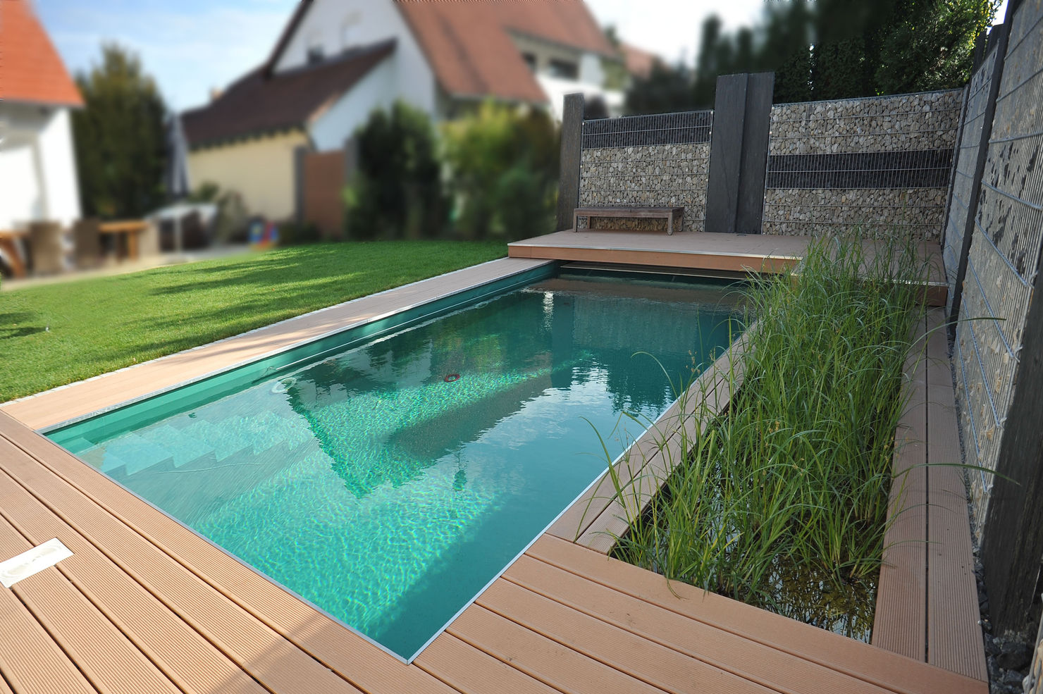 Пространство вокруг бассейна требует не меньше внимания, чем он сам. Его оформляют террасной доской, плиткой или декингом, чтобы обеспечить безопасность, чистоту и визуальную гармонию.